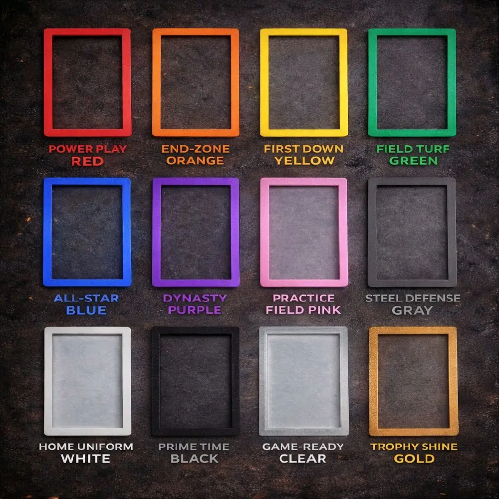 The Foundry Frame by The Card Foundry is a premium 3D-printed display frame designed to elevate your slabbed cards with bold color, clean presentation, and rock-solid durability.