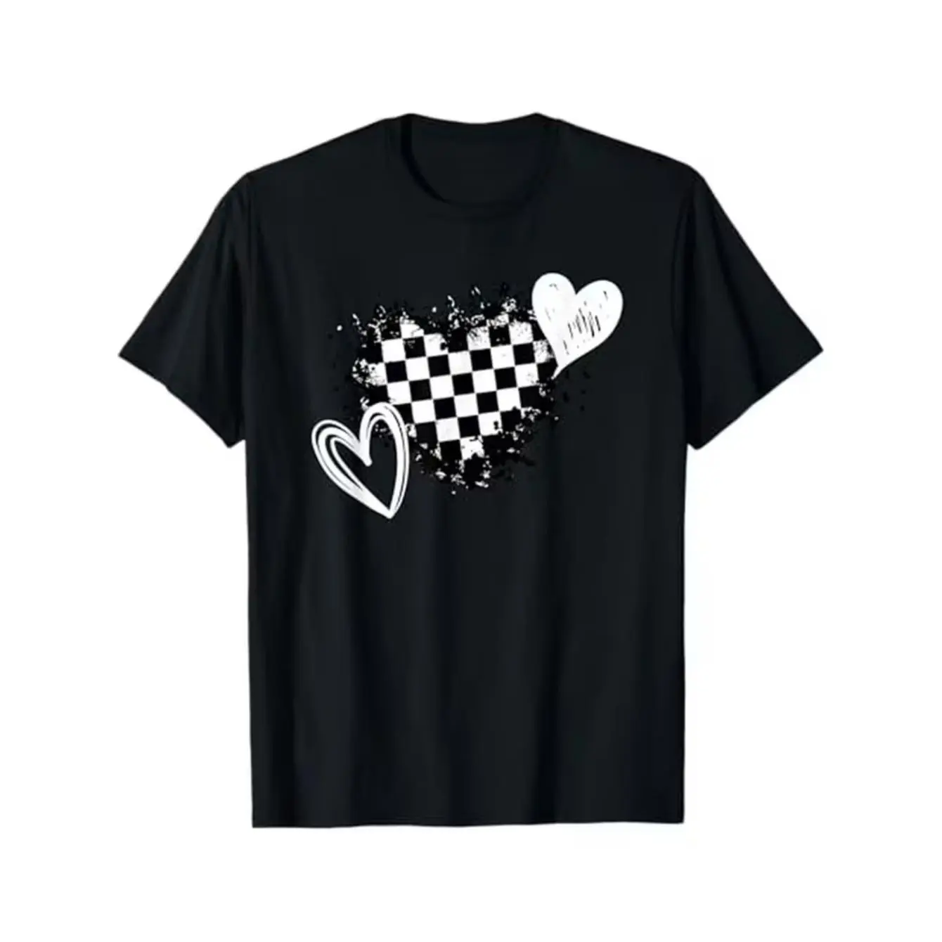 Men's racing and love Graphic T-Shirt - Short Sleeve Crew Neck Regular Fit Casual Wear | Soft & Breathable Fabric, Durable Print, Everyday Comfort, Machine Washable, graphic design with checkered flag and heart motifs casual wear for motorsport