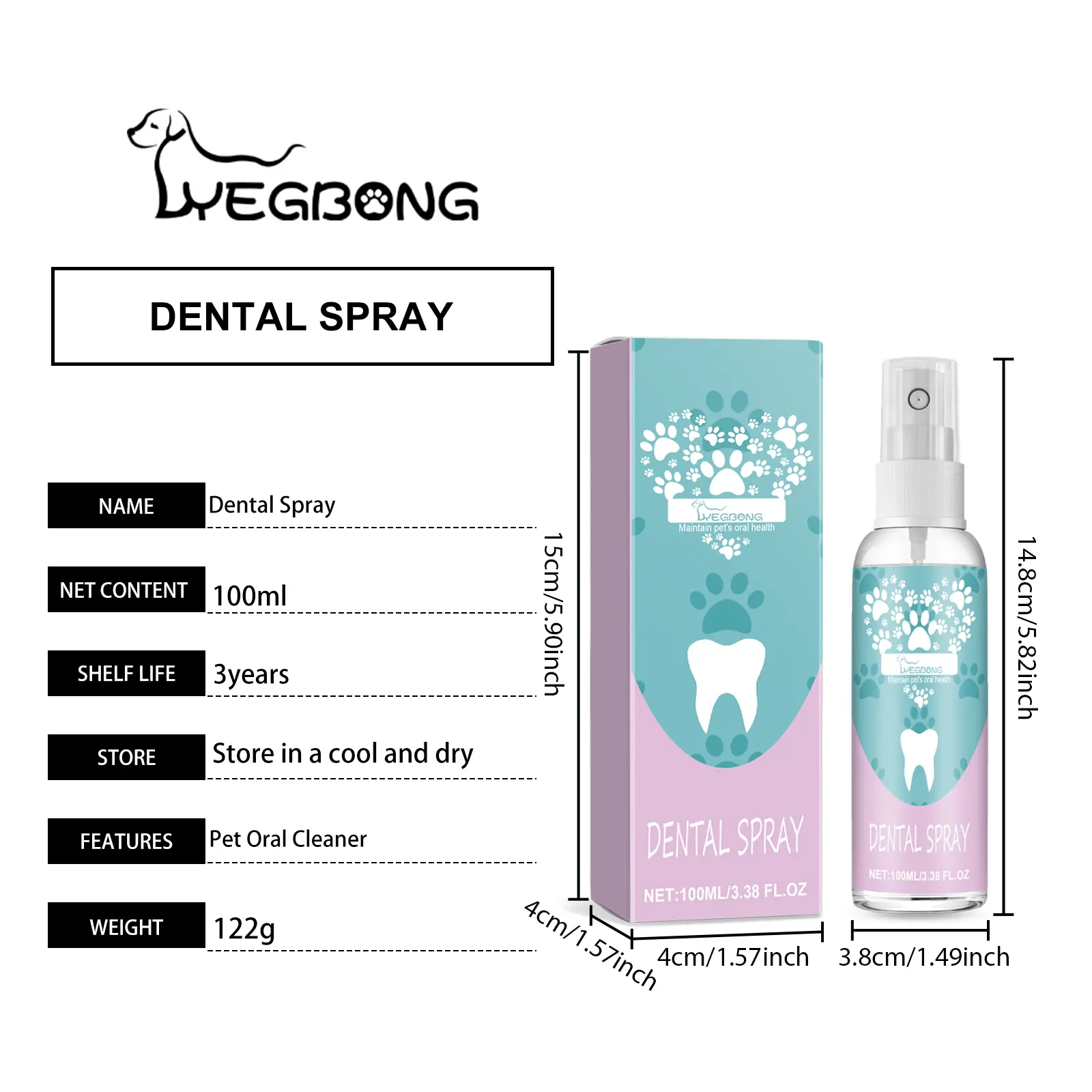 PET Dog & Cat Dental Care Spray, Vet-Recommended Breath Freshener & Teeth Cleaning Spray, Eliminate Bad Breath