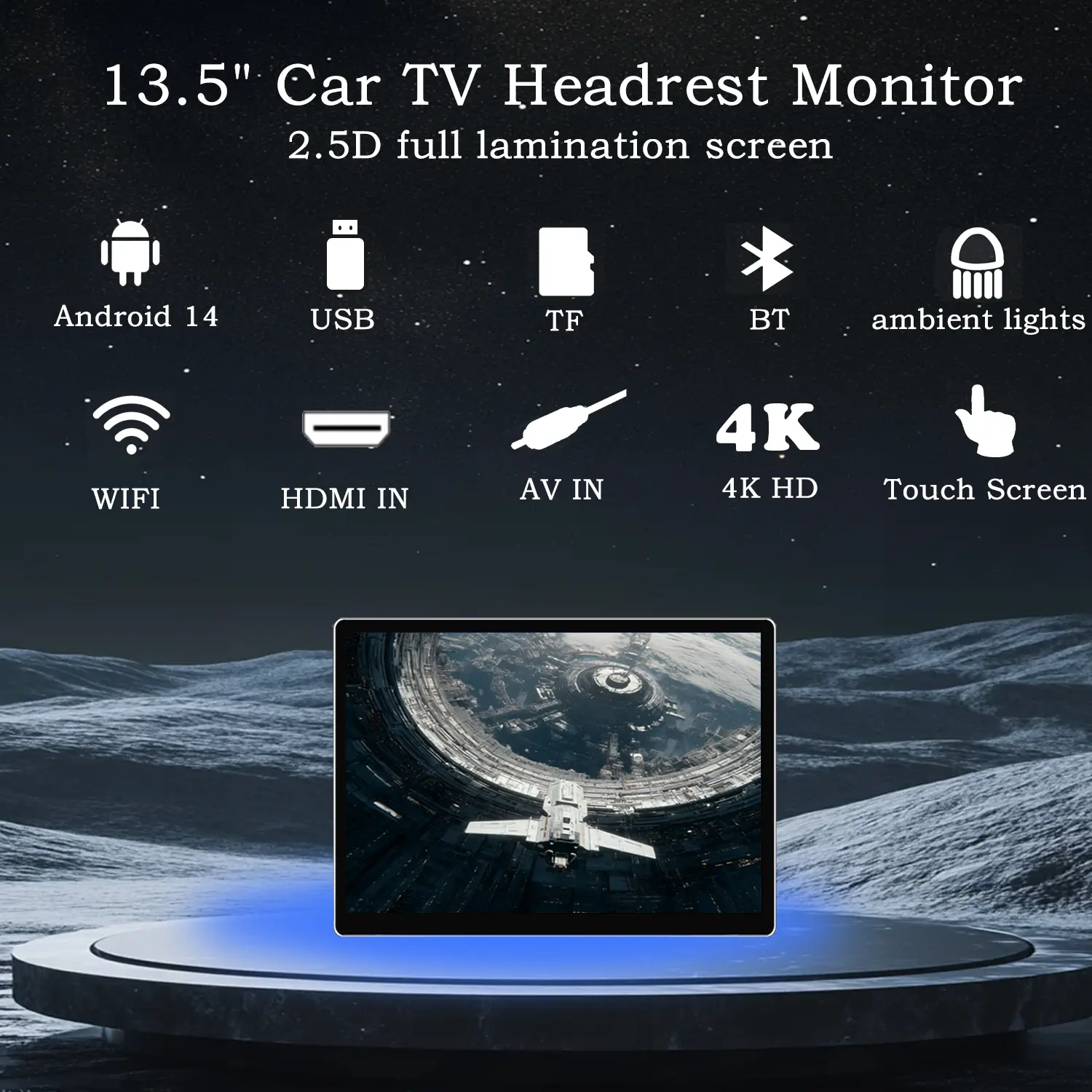 ·Touch screen:This product adopts a 13.5'' inch touch screen. The screen resolution is 1920*1280, and the display is super clear and delicate.From now on your car will have a small smart TV.