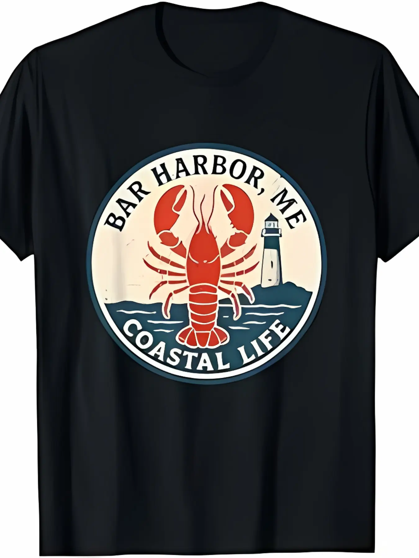 Men's coastal life and lobster culture in Bar Harbor, Maine Graphic T-Shirt - Short Sleeve Crew Neck Regular Fit Casual Wear | Soft & Breathable Fabric, Durable Print, Everyday Comfort, Machine Washable, vintage nautical emblem a circular emblem featuring