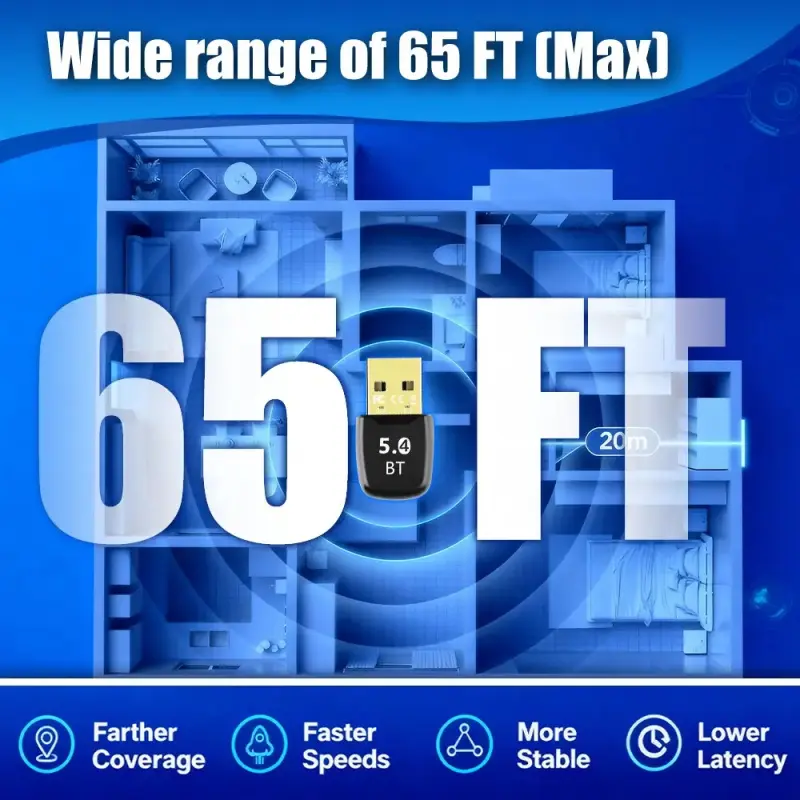 Enjoy an extended wireless range of up to 65 feet (20 meters) in open space, providing farther coverage for your Bluetooth devices. Whether you’re in the living room, office, or gaming room, you can connect your keyboard, mouse, headphone, or speaker without being restricted by distance.