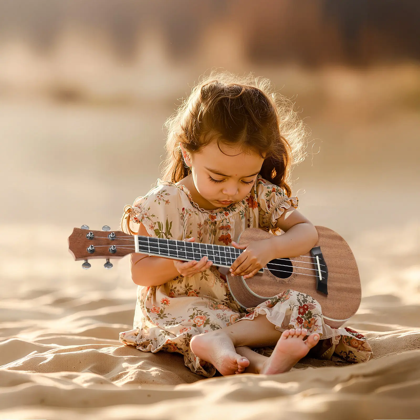 The ukulele's small, exquisite body is much smaller than a traditional guitar, making it easy to carry. Perfect for daily commutes, outdoor travel, or class breaks. Its unique expansion shape and eye-catching sound holes make it cute and charming. The mahogany body is warm and soft, meeting your needs with its delicate texture.