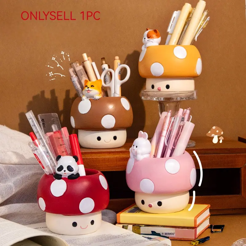 Cute Cartoon Mushroom Pen Holder, Student Desk Organizer, Multi-Functional Creative Storage Decor, Resin Succulent Plant Pot, Handmade Mini Planter, Cute Desk Accessories