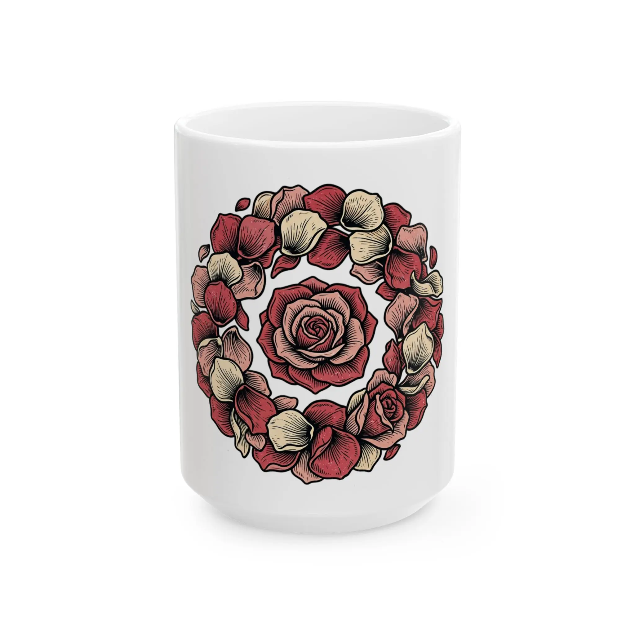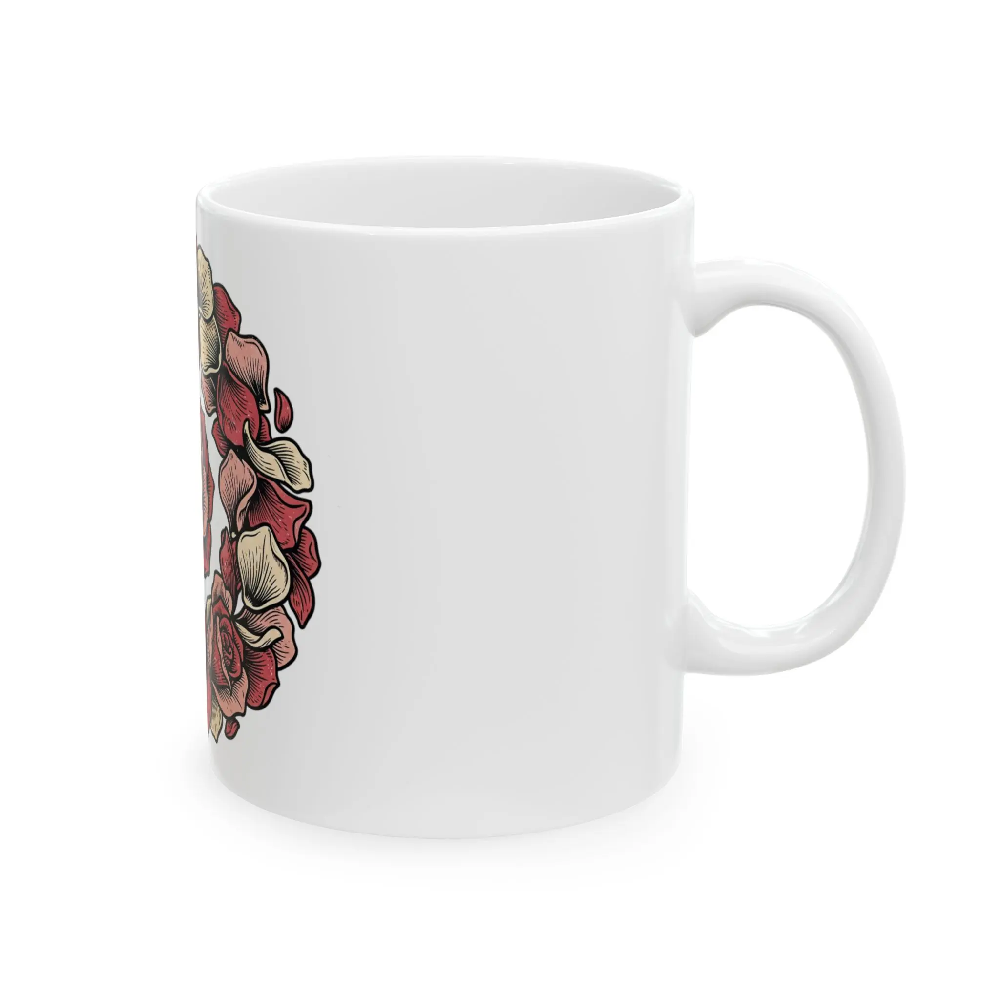 Deep, vintage reds and warm ivory tones form an intimate circle of blooms that feels both romantic and quietly bold. Each sip becomes a small, meditative moment—morning coffee, afternoon tea, or a late-night cocoa. The sturdy C-handle and shiny finish give it everyday ease, while the rich palette elevates a simple routine into something thoughtful and slightly nostalgic. It sits naturally on a windowsill, a desk, or a bedside tray, invited into slow mornings and cozy conversations.