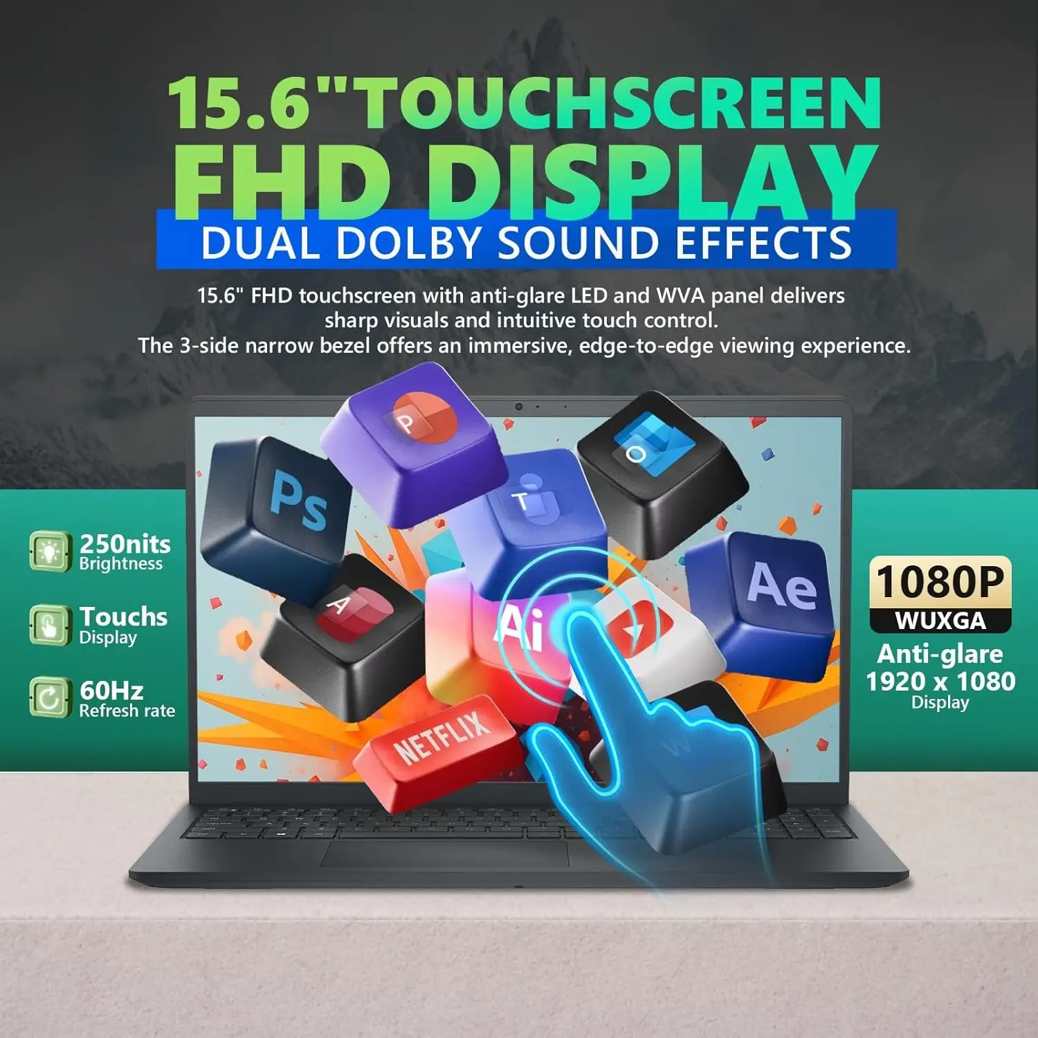 ·✅Dell 15.6" FHD Touchscreen for Notes, Signatures & Navigation || Tap to open files, swipe through lecture slides, or sign digital forms directly on the 1920x1080 anti-glare display. The dell touchscreen laptop eliminates mouse dependency in class, meetings, or while traveling—making everyday tasks faster and more intuitive.