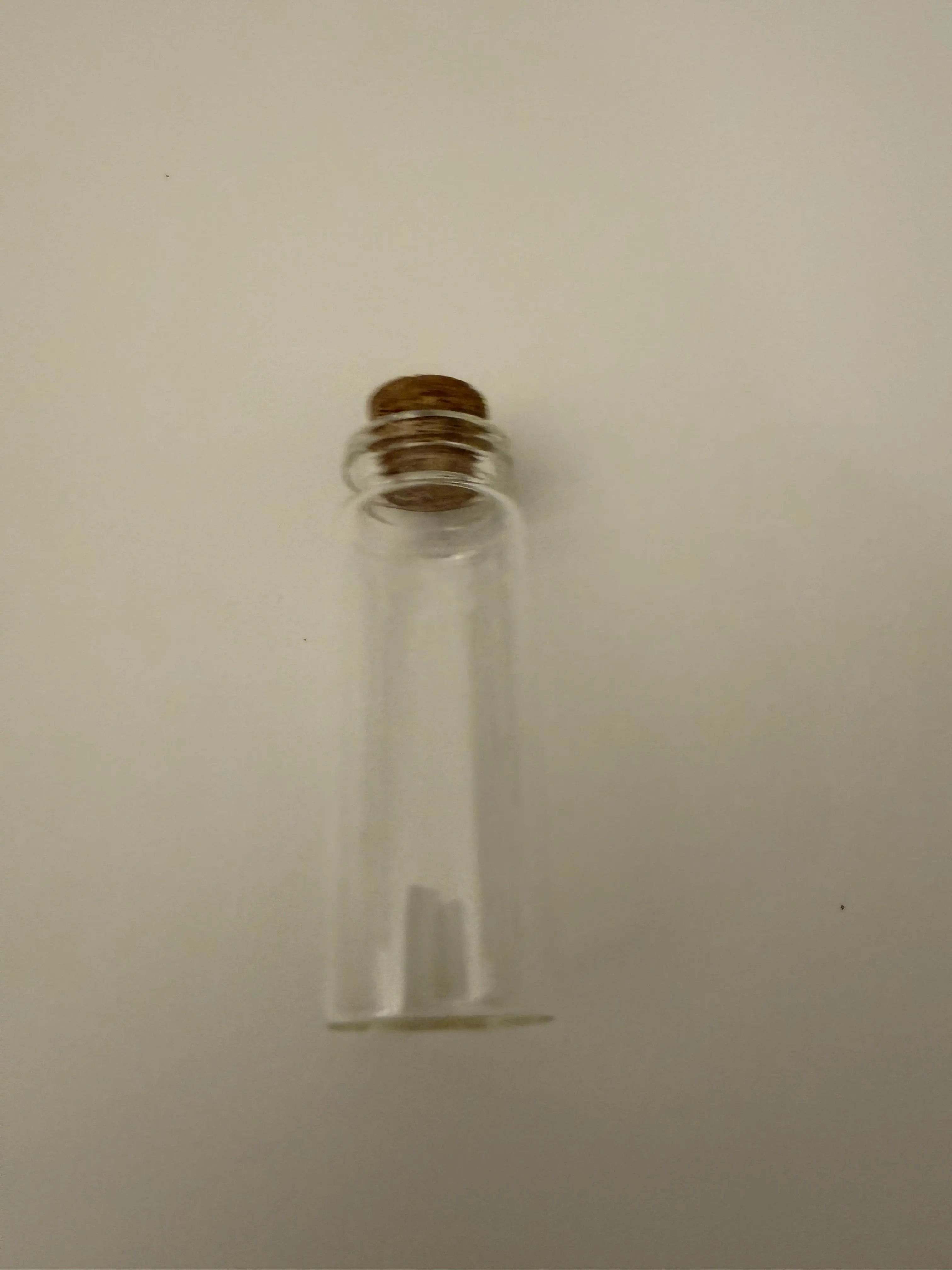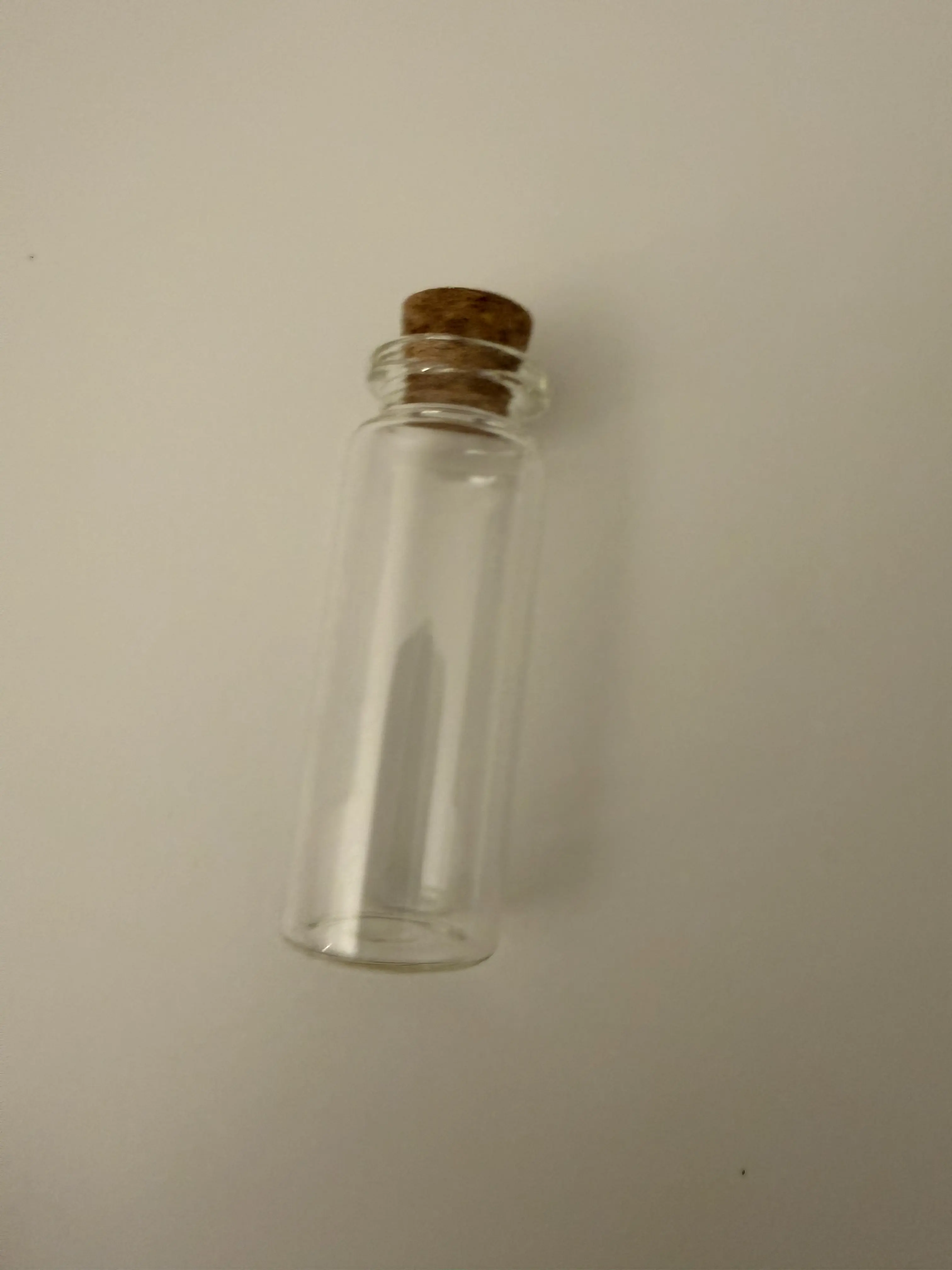 A delicate clear glass vial with a natural cork stopper — perfect for wish jars, message-in-a-bottle gifts, fairy dust keepsakes, essential oils, tiny treasures, or DIY pendant jewelry. A charming little bottle for crafters, gift givers, and romantics.