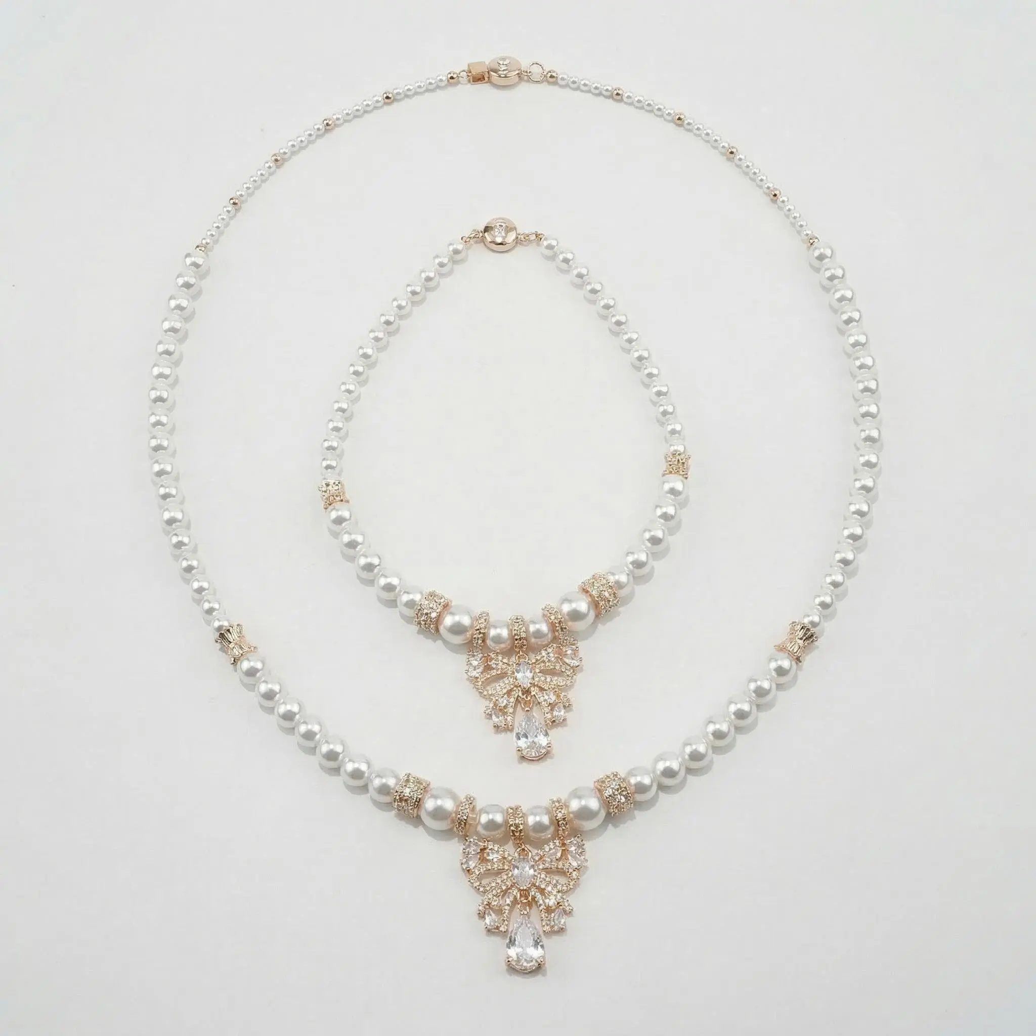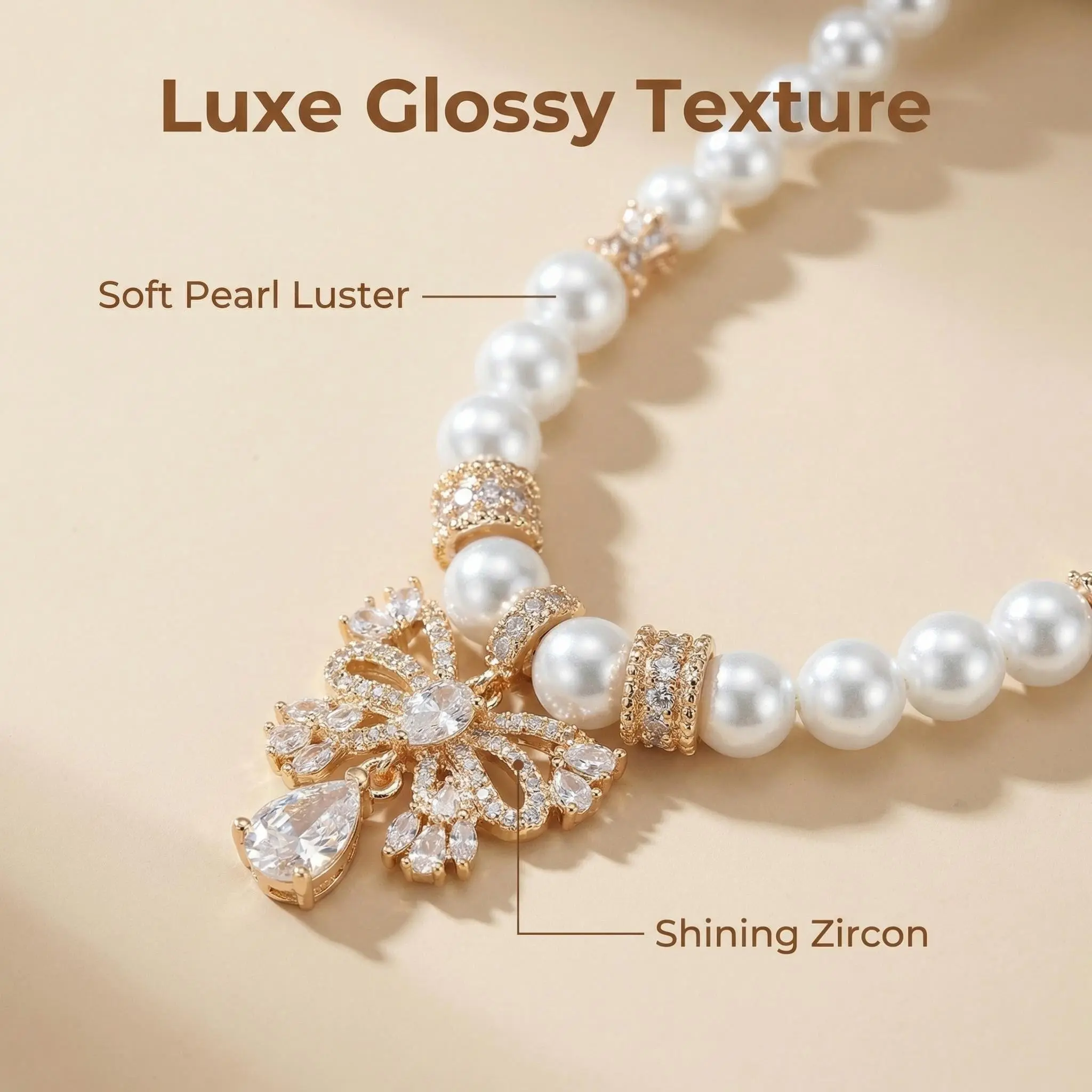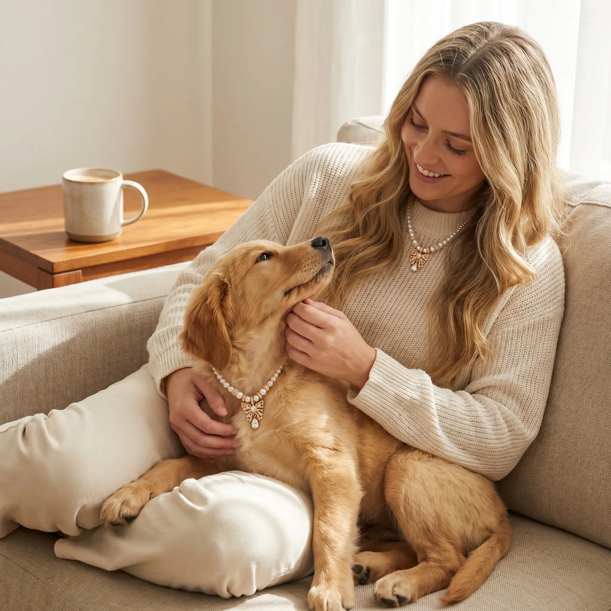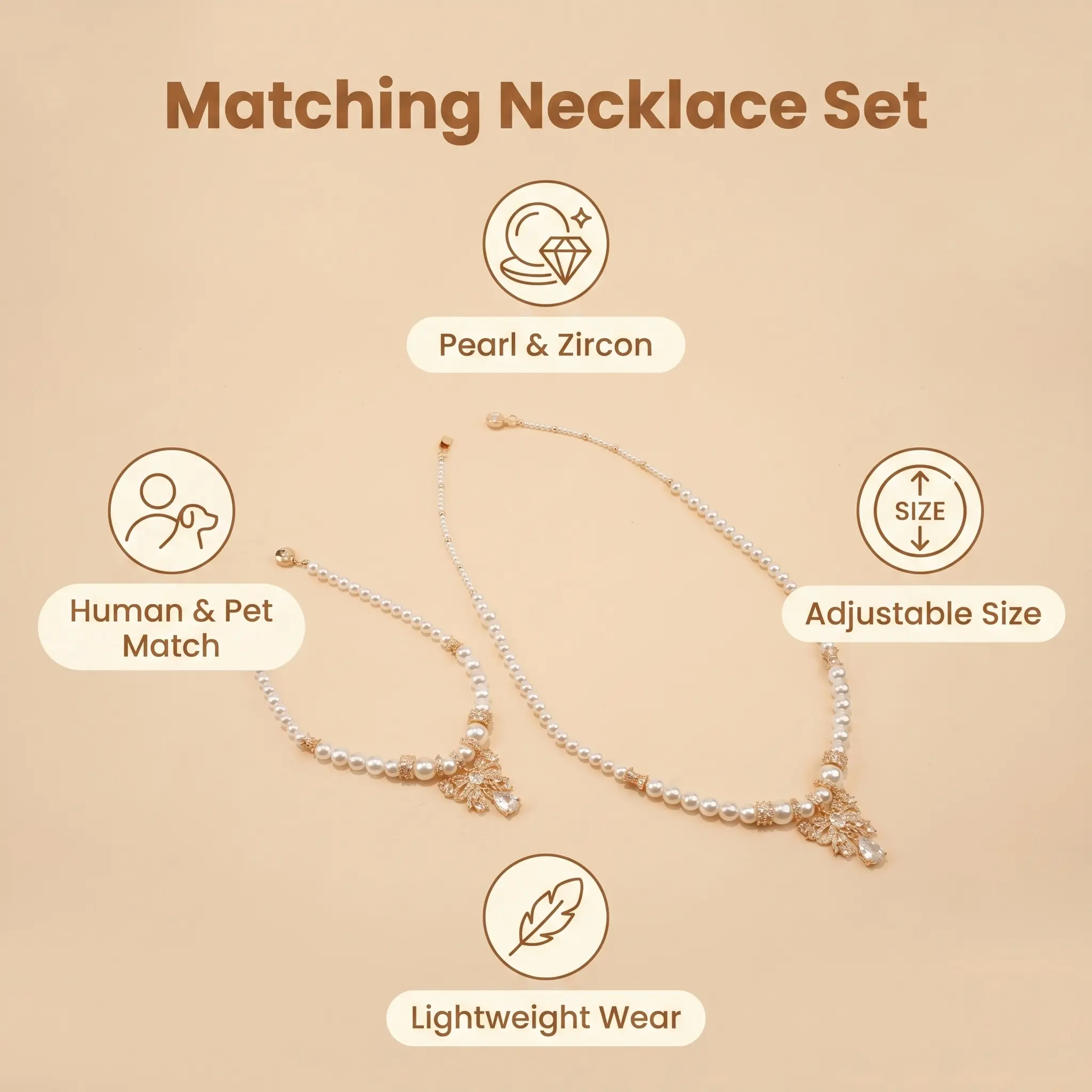 Frost Gleam & Whisper Owner and Pet Pearl Zircon Necklace Set for Daily Wear