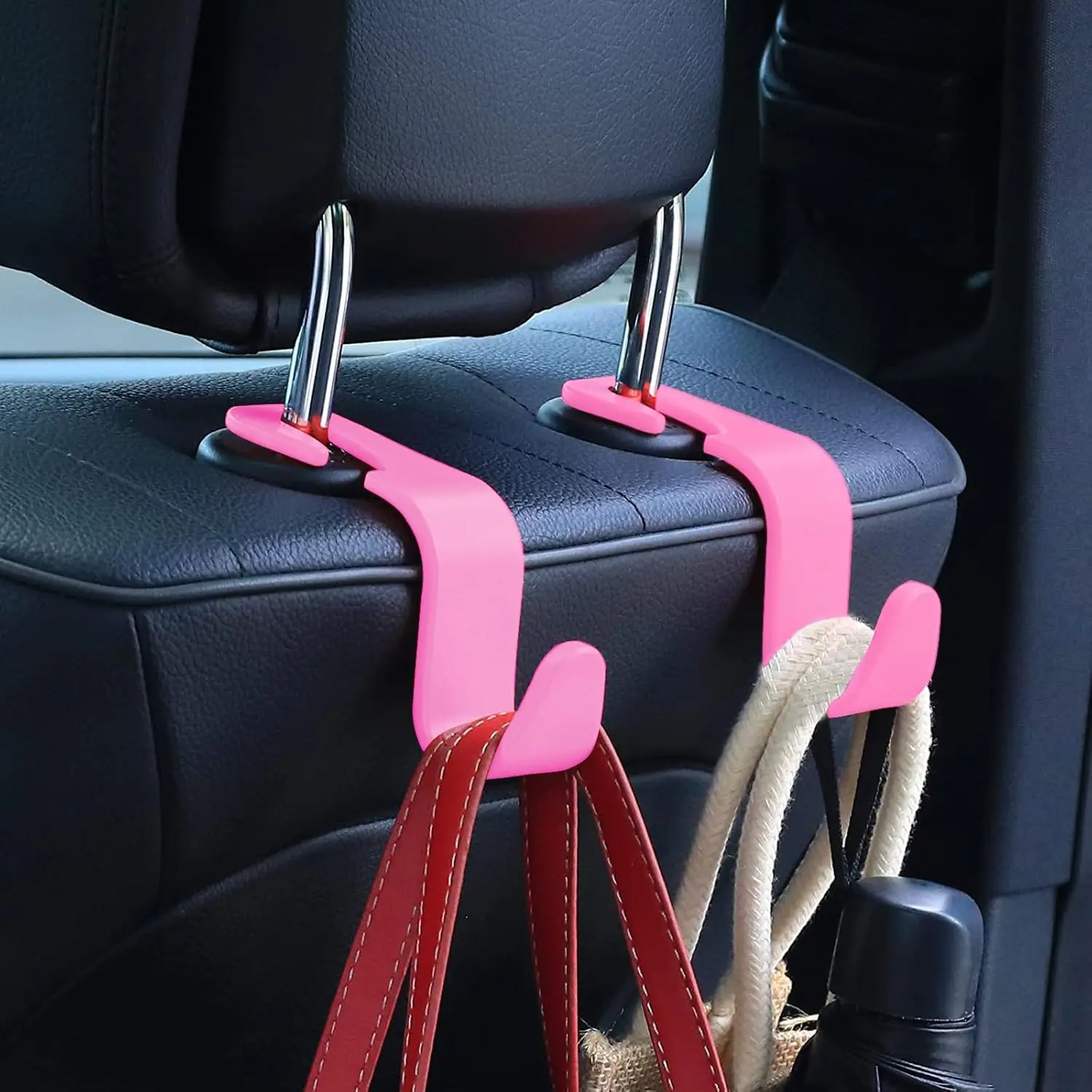 [High Quality Material]: The car seat headrest hook is made of polypropylene material, which is durable, solid and safe. Car seat headrest hooks will not deform when hanging items. What's more, The car seat headrest hooks can also be cleaned with water when there is dust and will not fade. [Easy Installation]: Installing the car seat headrest hook is easy. Installation does not take much time, so we do not need to worry about the installation procedures. We are able to easily install these hooks without removing the headrest or using any other installation tools. [Functional Car Organizer]: With car hooks installed in the car, you can keep your car tidy and things out of the way. Meanwhile, our car seat hooks also play a great role. It can be turned into a great storage space for handbags, purses, papers, hats, water bottles, school bags, baby supplies, and so on. [Special Design]: The car seat headrest hooks are designed to meet the needs of the public. This design is also mechanically designed to withstand the weight of generally lightweight things. At the same time, car headrest hooks keep your car clean and tidy, so that you can enjoy a pleasant driving experience. [Satisfaction Service]: The quality of our goods and the quality of our service are top-notch. If you have any questions about my products when you receive them, please contact us immediately and our customer service team will do their best to solve your problems.