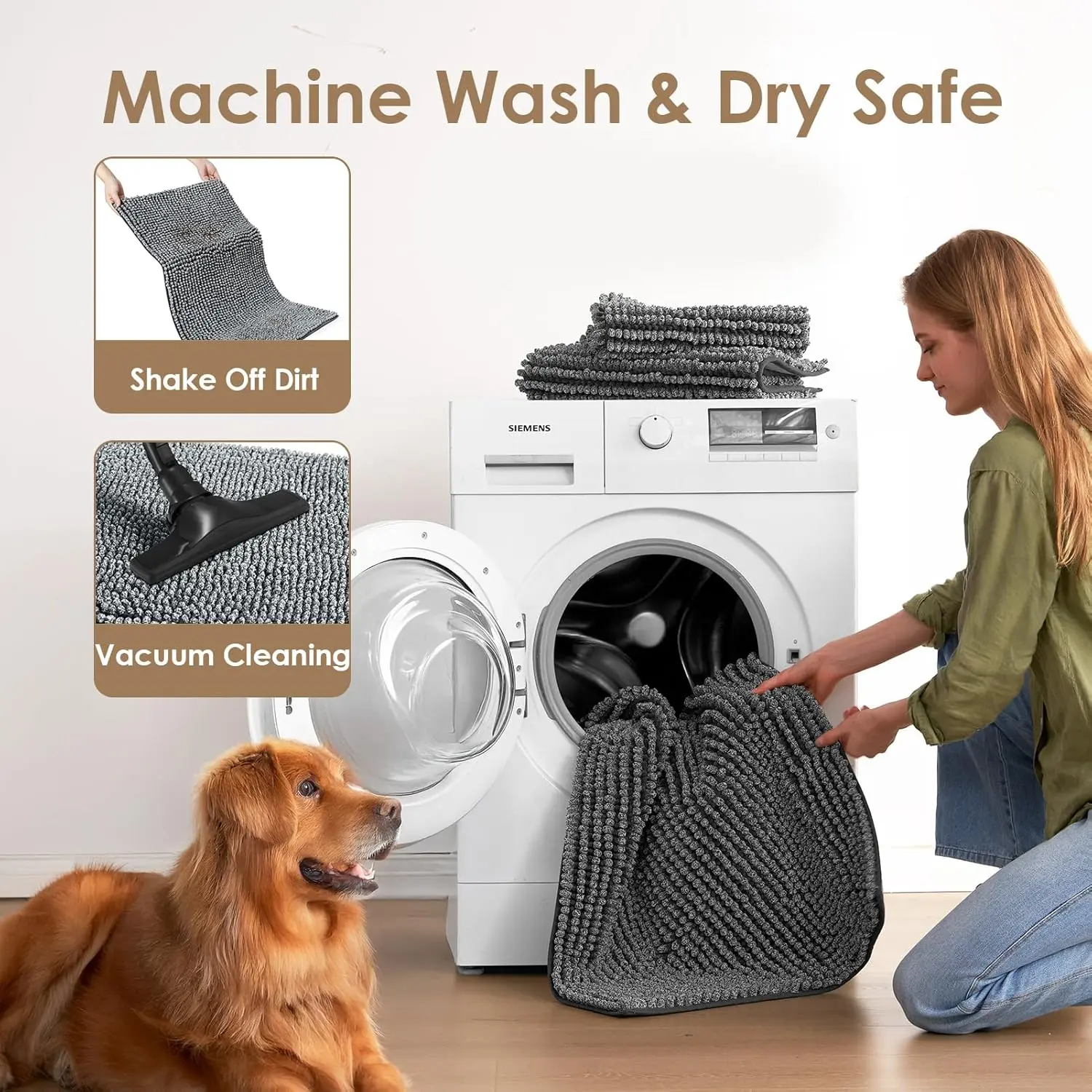 ·SUPER ABSORBENT MUDDY PAWS RESCUE MAT: Tired of soggy floors? Our thick high-low pile chenille fibers trap moisture and dirt on contact, absorbing up to 5x its weight. Place it at front door entrances, mudrooms, or patios to keep muddy paws, wet boots, and tracked-in water at bay. Completely machine washable for easy cleanup in any busy household.