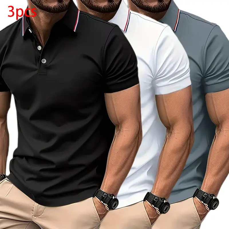 ·Slim-fit Design: This men’s collared short-sleeve polo shirt is perfect for casual business fashion. It offers a sleek, slim-fit silhouette that complements any outfit. Ideal for everyday wear, especially during the summer months.