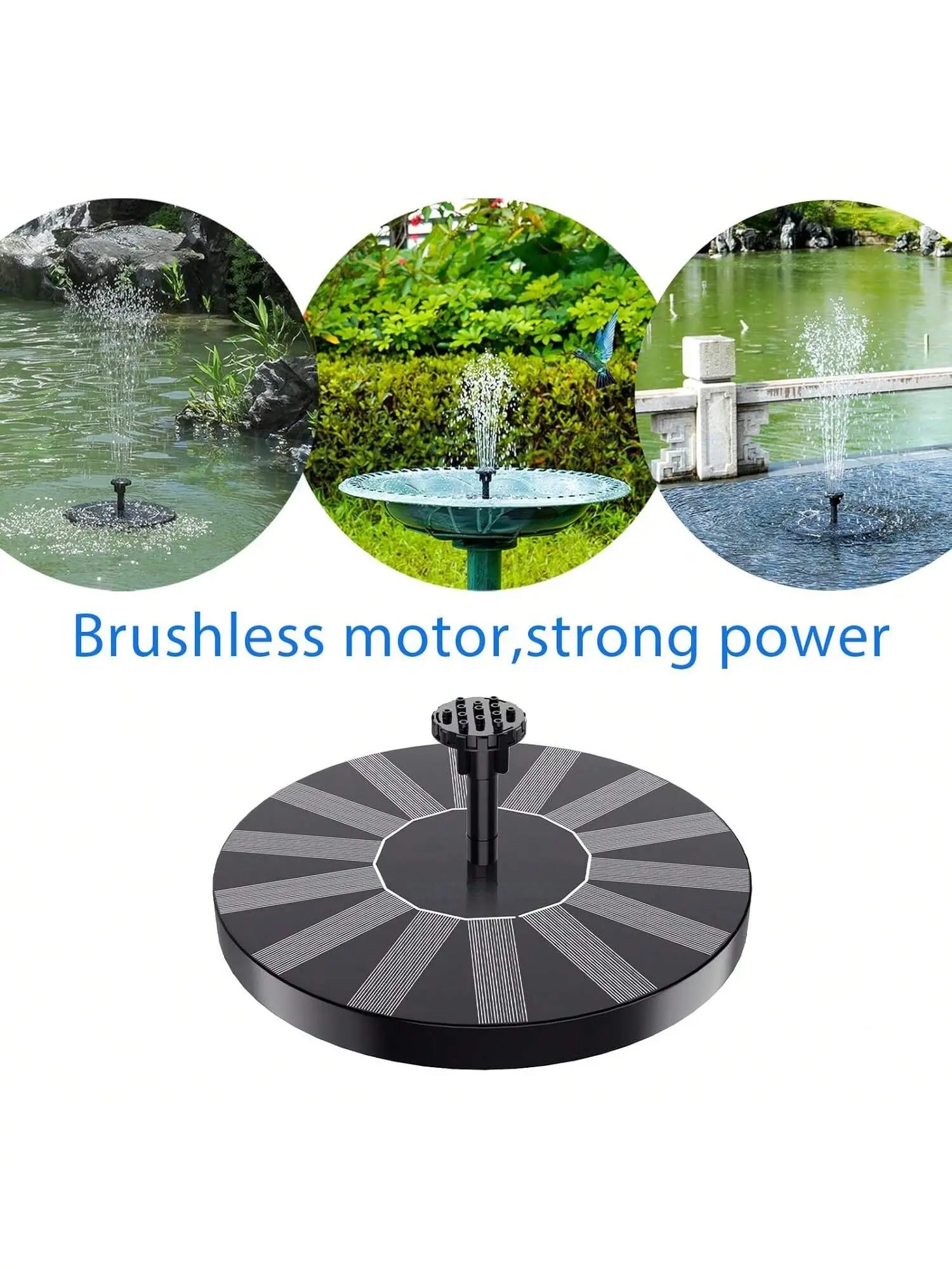 Want to attract a lot of hummingbirds to your backyard? The 15,000W solar bird bath fountain is powered by solar energy. The high-efficiency solar panel works immediately under sunlight. The more sunlight, the better the effect, bringing a better ecological environment to your garden. The fountain will bring you unexpected beauty.