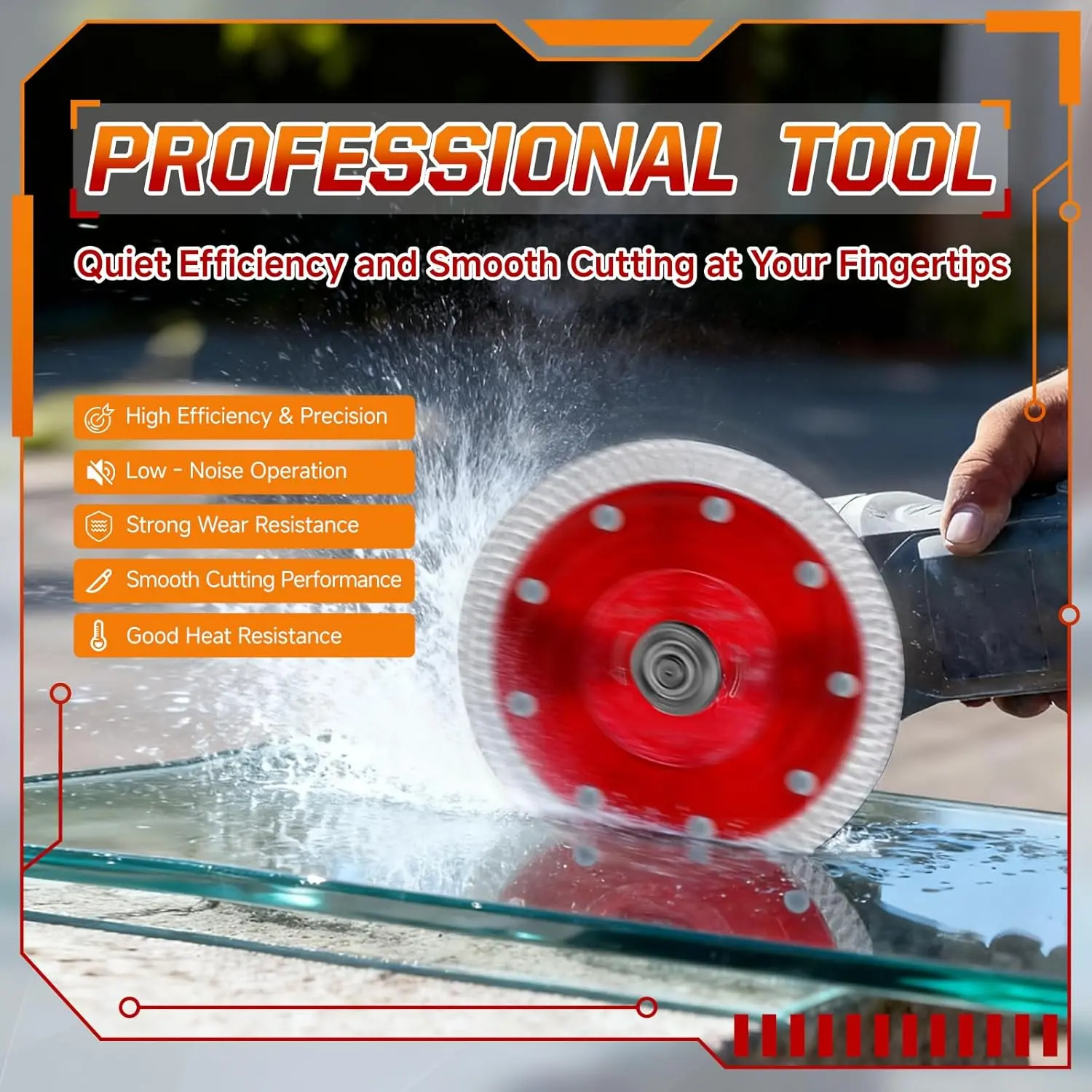 Achieve Clean, Precision Cuts This super thin 4-1/2 inch diamond blade features an innovative X-teeth turbo mesh rim, engineered for fast and smooth cutting through porcelain, ceramic, and granite.Its ultra-thin design minimizes chipping and material waste, ensuring clean edges for professional-looking results on every project .Engineered for Superior Efficiency & Longevity Crafted with a high-performance diamond matrix, this indestructible disc offers an extended blade life and enhanced material removal rate.It's built to withstand rigorous use, providing exceptional value by reducing the frequency of blade replacements .Versatile for Both Wet and Dry Cutting Designed for use with angle grinders, tile saws, and wet saws, this diamond cutting wheel offers flexible operation.For the longest blade life, wet cutting is recommendedhowever, the blade also delivers efficient performance for dry cutting tasks when needed .Robust Design for Stable, Safe Operation The thicker core design of this tile grinder blade significantly reduces vibration and wobbling during cutting.Manufactured from robust materials, it ensures a spark-free operation with no burn marks on materials, promoting a safer work environment .Wide Compatibility with Tile Saws and Grinders With a standard 7/8-inch arbor, this 4.5-inch tile cutting disc is compatible with most angle grinders and tile saws on the market. It is an essential tile tool for cutting a variety of materials including vitrified tile and other thin masonry