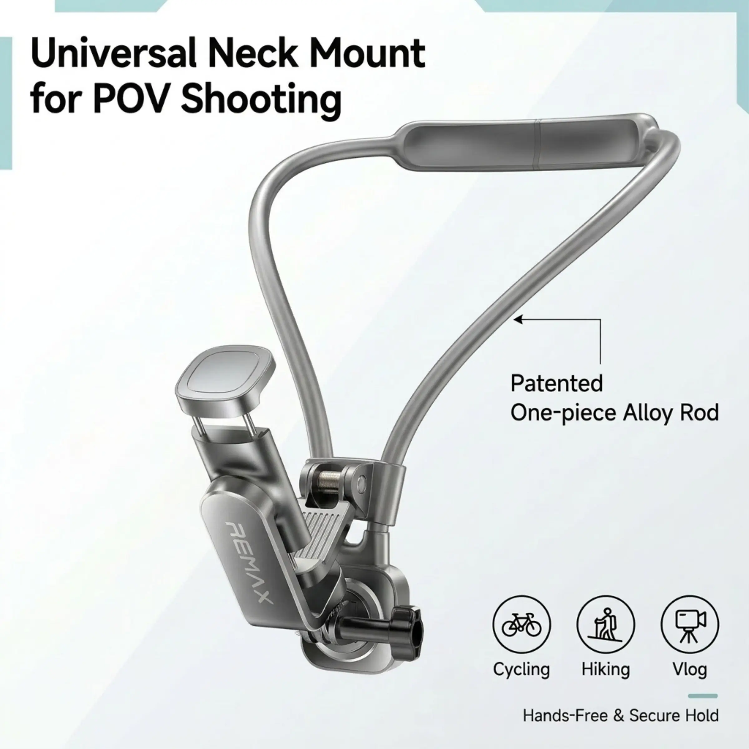 First-Person Neck Phone Mount,One-piece alloy arm, 360° adjustable.Stable damped hinge, detachable clamp with camera adapter. Soft silicone neck pad, comfortable fit.Ideal for POV shooting & multi-scene use.