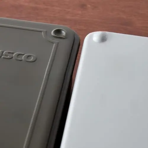 Cylinder lock (sold separately): Cannot be installed Hooks: No Anti-skid Grooves: Yes External Dimensions (W x D x H): 8. 0 x 4. 3 x 2. 2 inches (203 x 109 x 56. 0 mm) Color: Matte Black Effective Inner Dimensions (W x D x H): 7. 3 x 3. 5 x 1. 6 inches (186 x 88 x 41 mm) Body: Steel