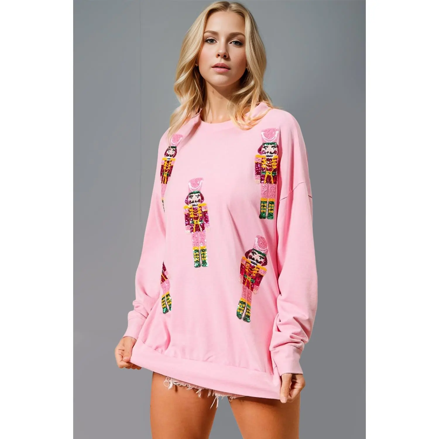Double Take Sequin Nutcracker Round Neck Long Sleeve Sweatshirt