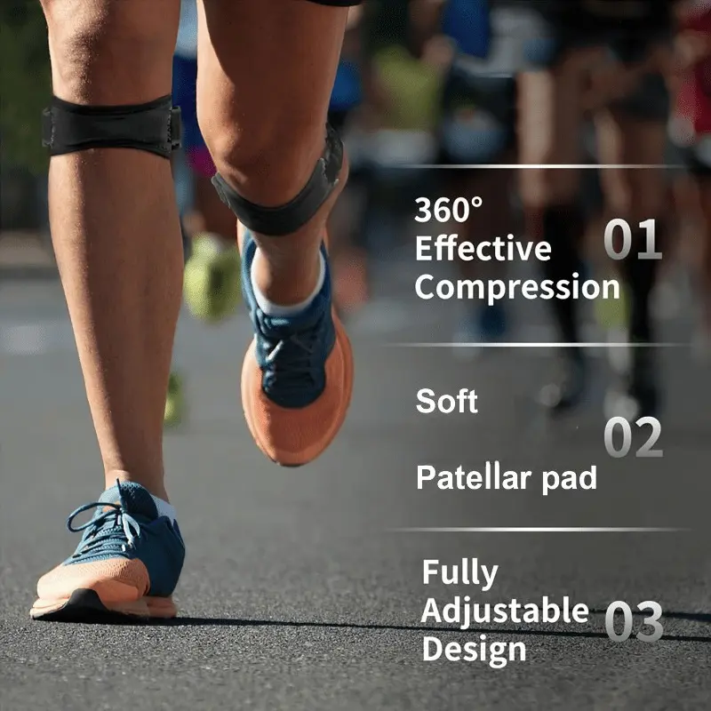 Targeted compression on patellar tendon – relieves knee pain from running, volleyball, basketball, and tennis.