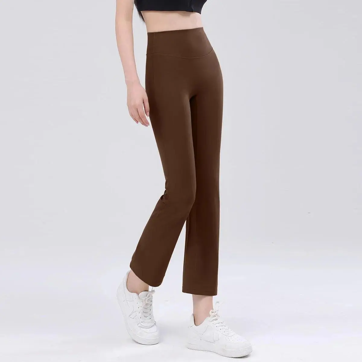 Nude High Waist Elastic Yoga Micro-flare Pants Leggings Gym Peach Lifting Hips Tight-fitting Outwear Pilates Waist Sculpting