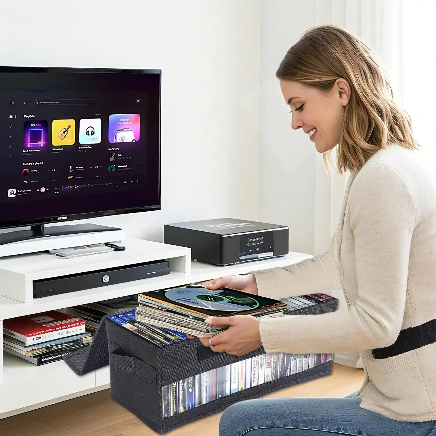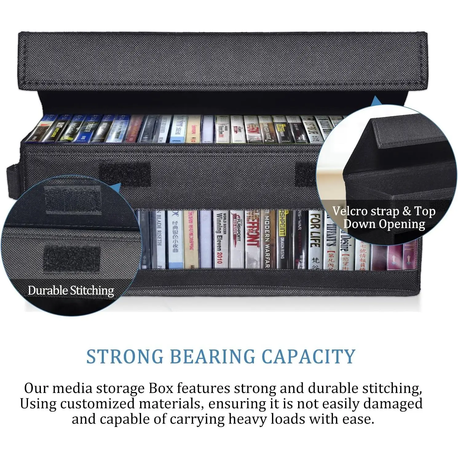 Foldable CD Storage Box with Sturdy Handles & Clear View Window