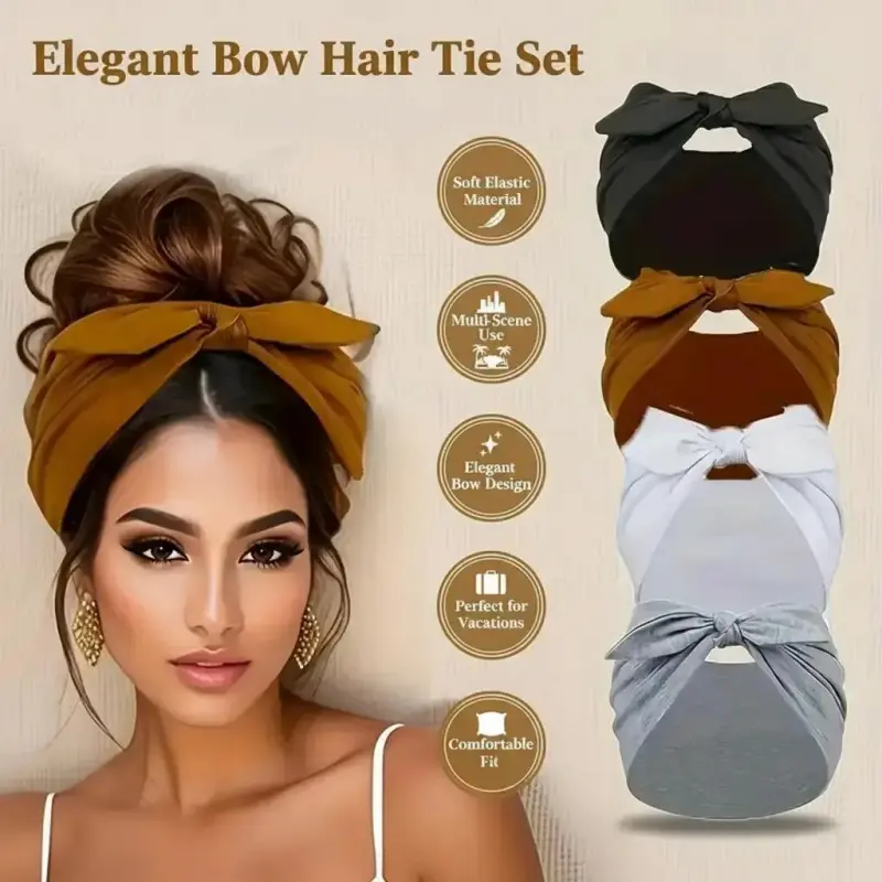 Fashion Solid Color Hair Tie, Soft Elastic Loose Headband, Comfortable Multi-Scene Use, Elegant Bow Design, Perfect for Daily & Vacation Style, Headband Head Wrap