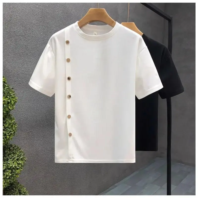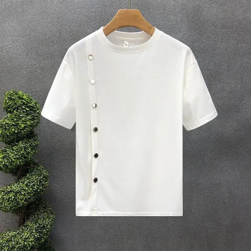 5. Men's Trendy Summer Short-sleeved Handsome Half-breasted T-shirt New Summer Striped Half-sleeved