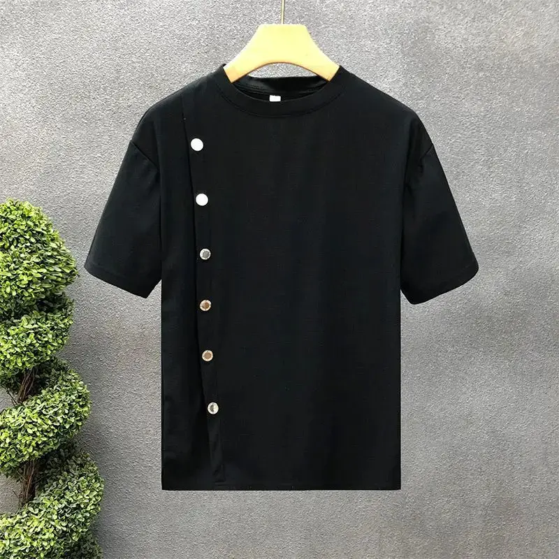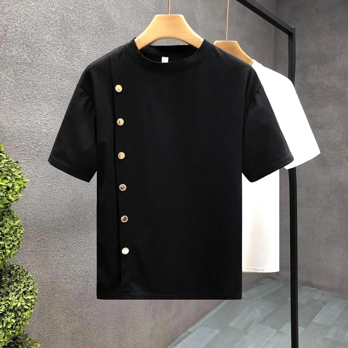 Men's Trendy Summer Short-sleeved Handsome Half-breasted T-shirt New Summer Striped Half-sleeved