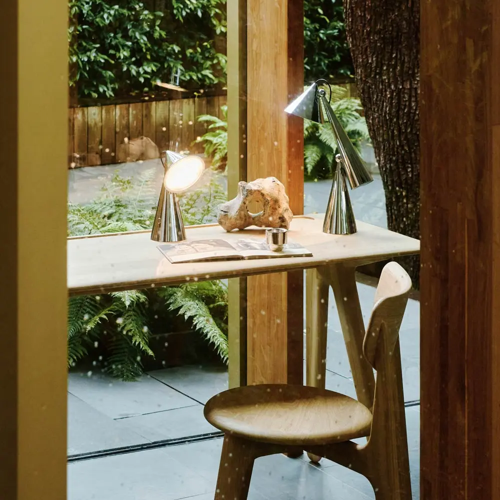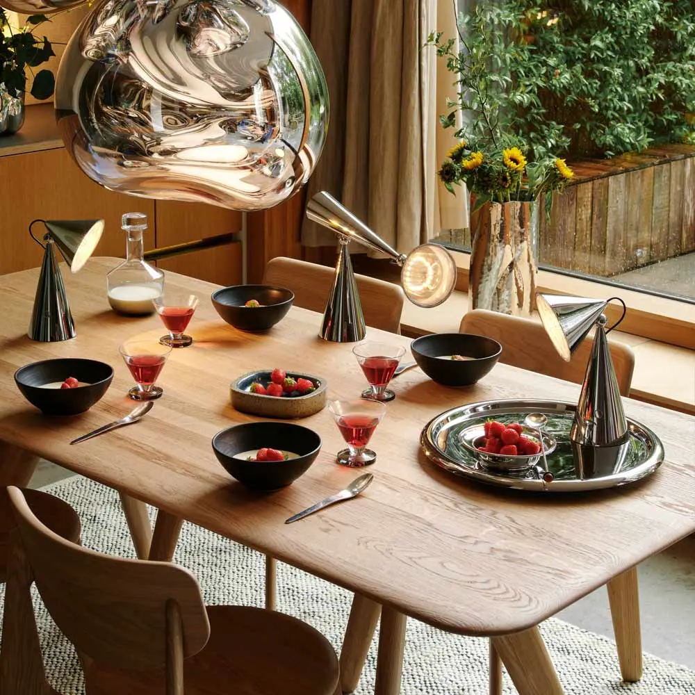 The Pose Portable LED Table Lamp from Tom Dixon brings a host of shapes and motifs into a single mobile light source, elevated in sophistication with a brilliant finish. Focused lighting is precise and functional as it flows through a flat lens within a conical shade topping a matching body. We love the statement-making aesthetic of a lamp that moves from space to space.