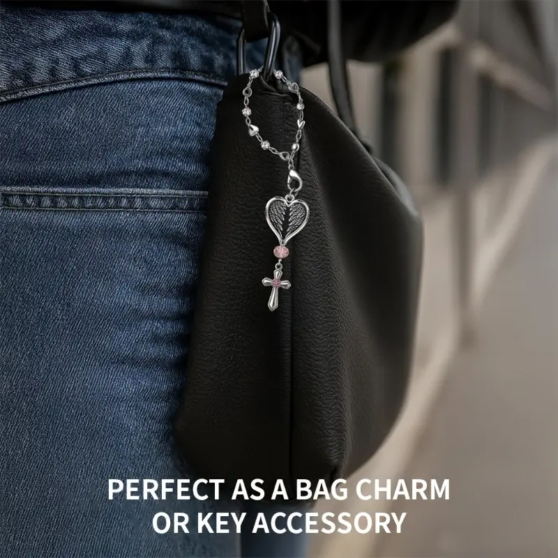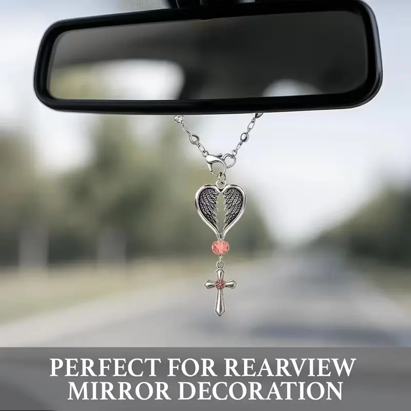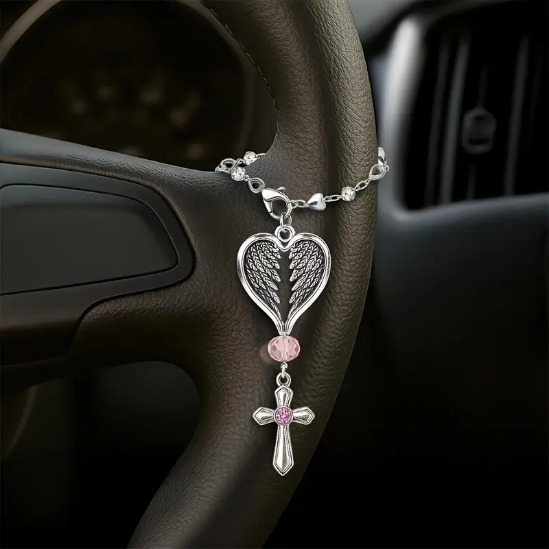 Heart Wings Pendant Angel Keychain, Car Rearview Mirror Ornament, Steering Wheel Chain Decor, New Year Gift, Valentine's Day Present