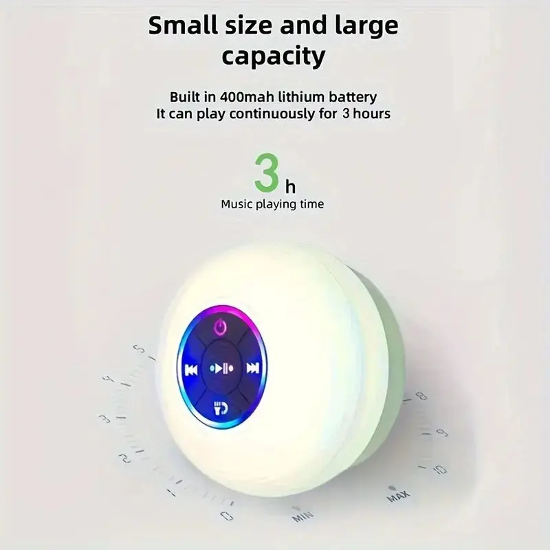 Portable and Waterproof: This Mini Bluetooth Shower Speaker is IPX4 waterproof, making it perfect for beach, shower, and home use.🌊