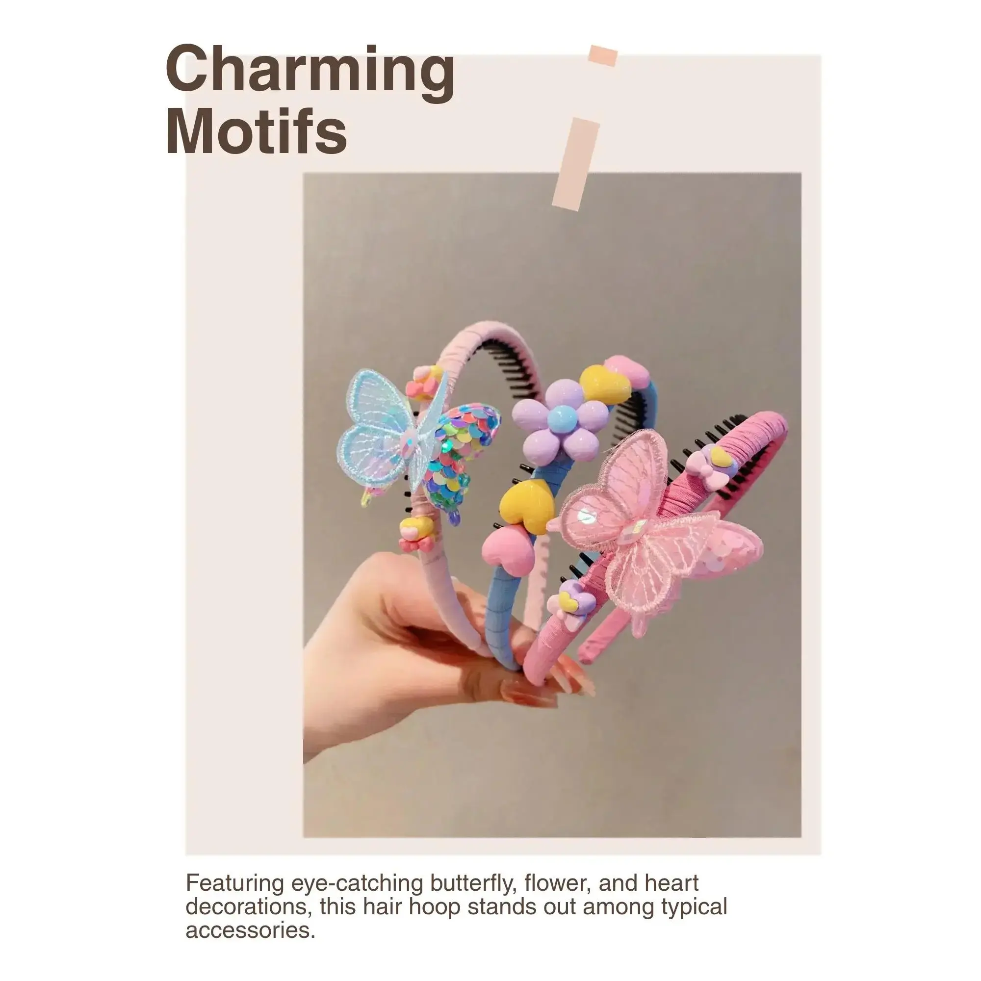 [Charming Decorations]: This hair hoop features delightful butterfly, flower, and heart motifs with colorful sequins that stand out from ordinary hair accessories.