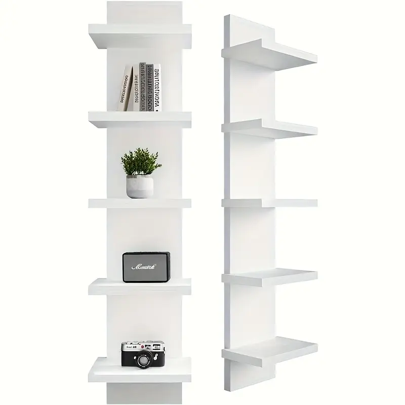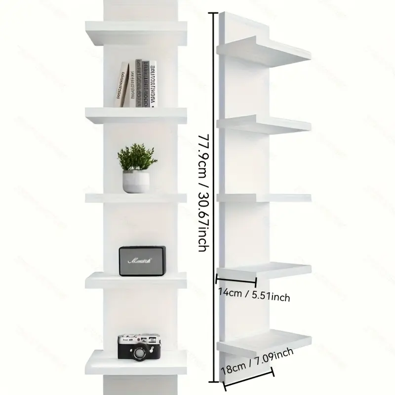 5. 5-Tier White Floating Storage Shelf | Durable Heavy-Duty Wooden Structure, Easy to Clean, Ideal for Storing Books, Display Items and Ornaments - Suitable for Living Rooms, Bedrooms and Entryways - Multi-Room Use, Minimalist Design