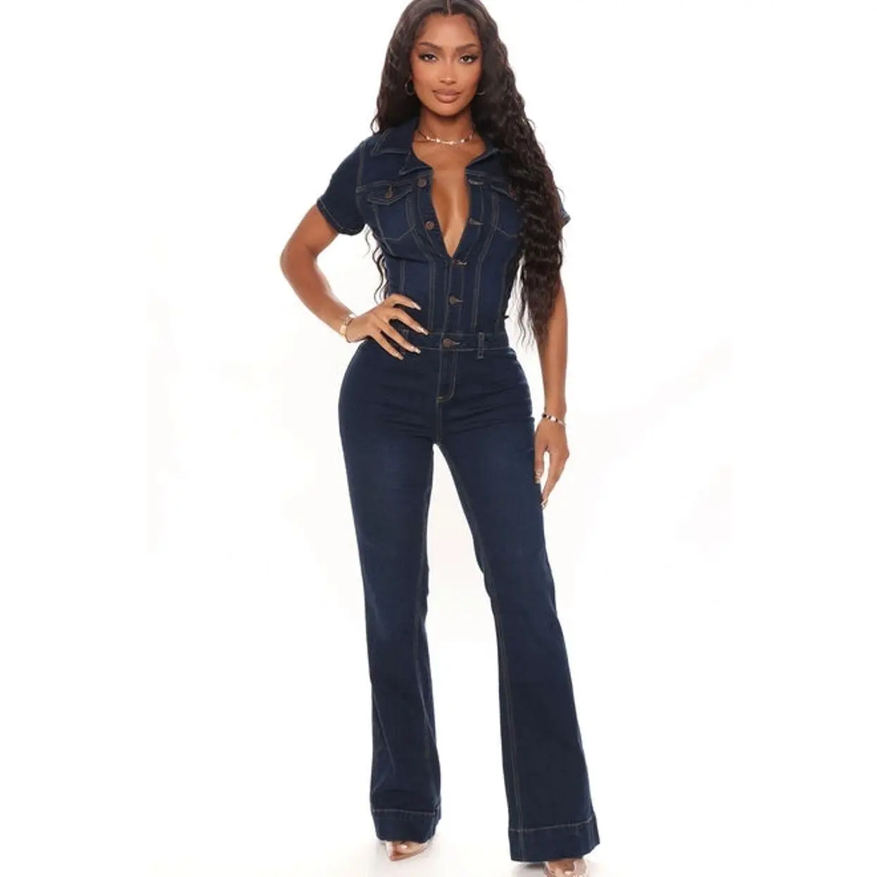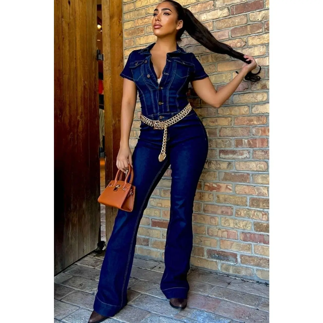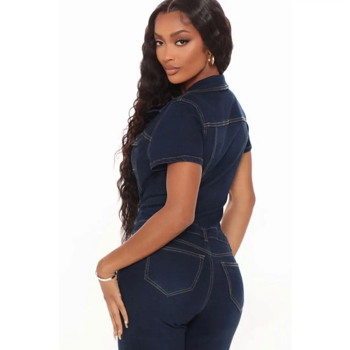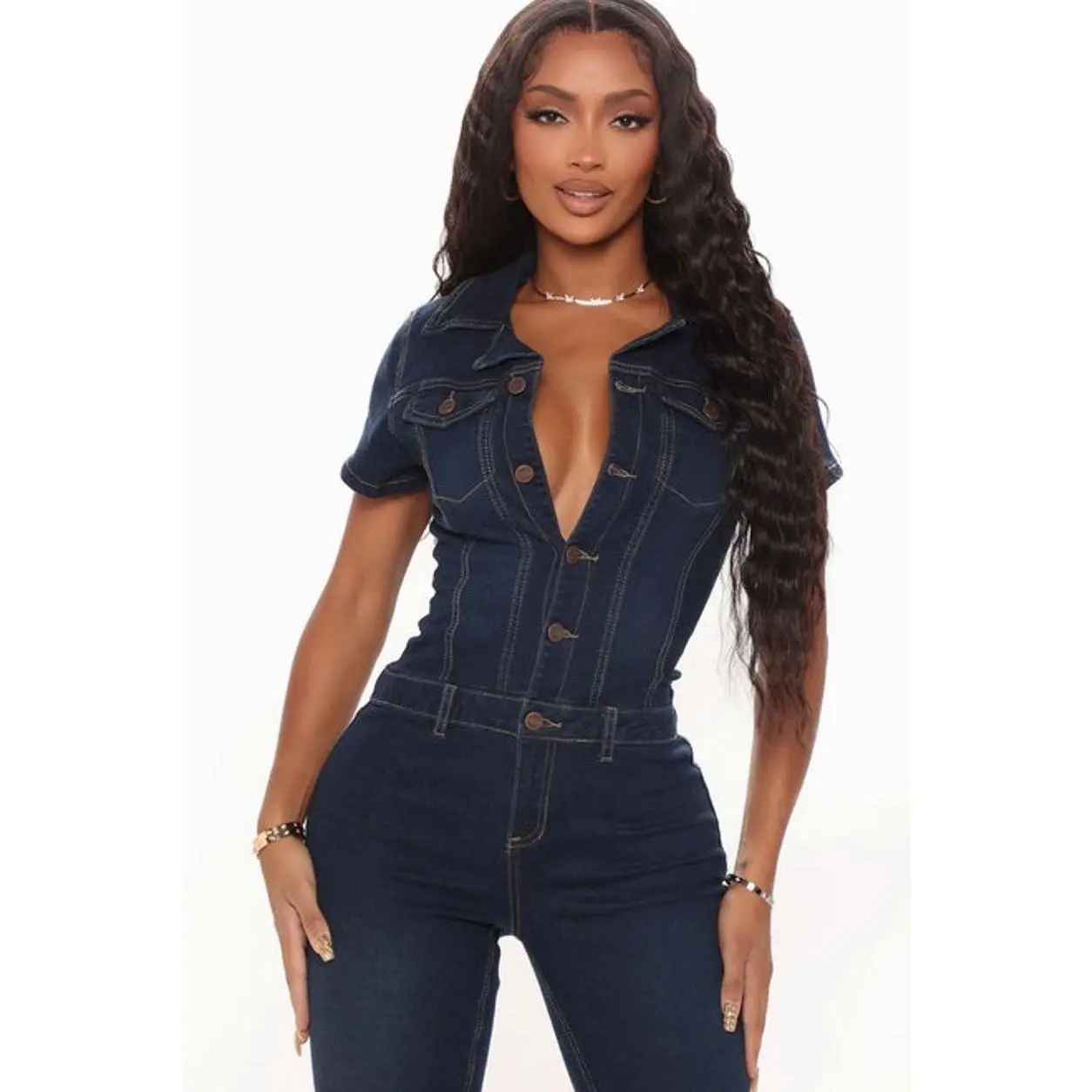 Day Dreaming Long Sleeve Denim Jumpsuit - Dark Denim