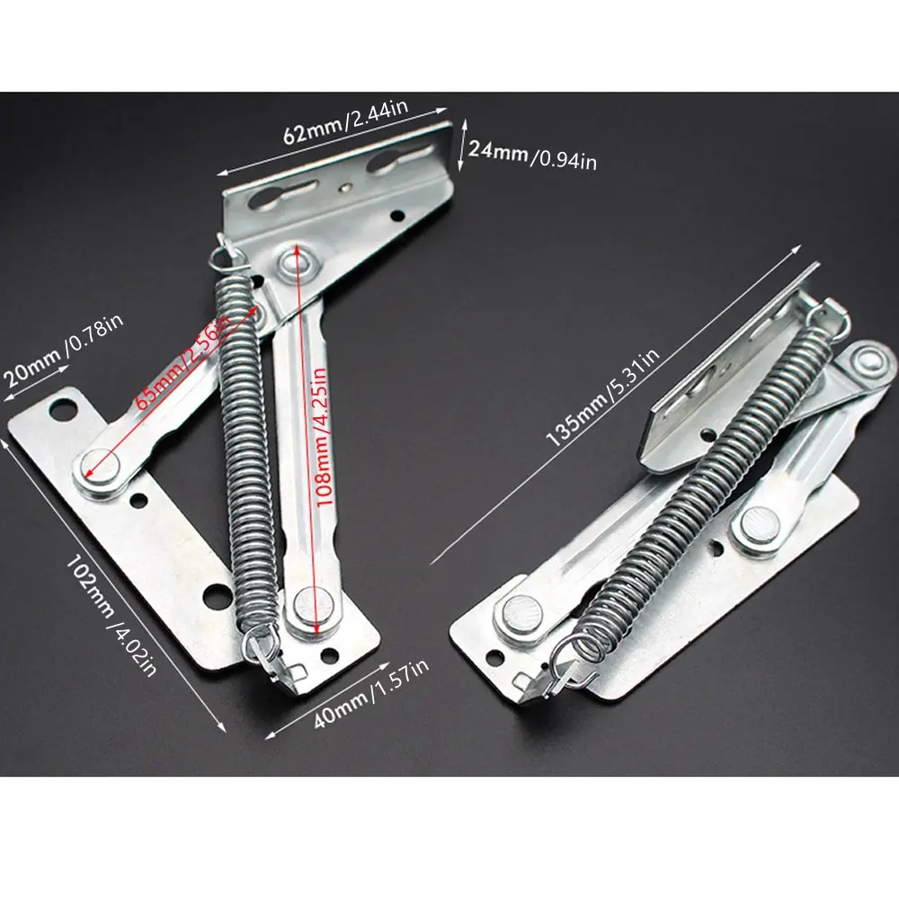 These hinges are ideal for storage cabinets and sofa beds. The adjustable design and lift-up flap support make them a practical choice. The triangular spring ensures stability and ease of use. Enhance your furniture with these functional hinges.