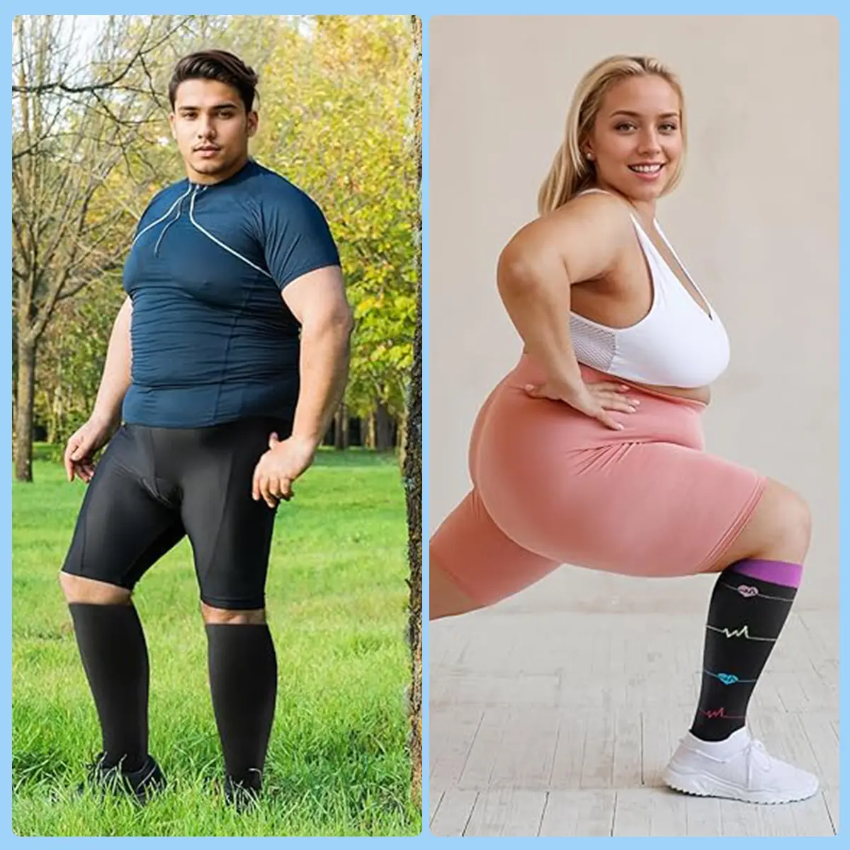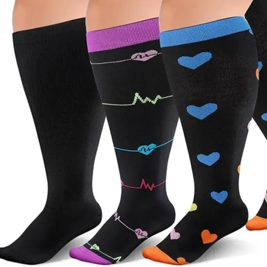 WIDE CALF SOCKS DESIGN-New Style of wide calf socks,specially for women and men who need plus sizes.We offer a variety of large sizes (XL-4XL) to provide strong support for your legs.Also is a lightweight,breathable and comfortable socks.