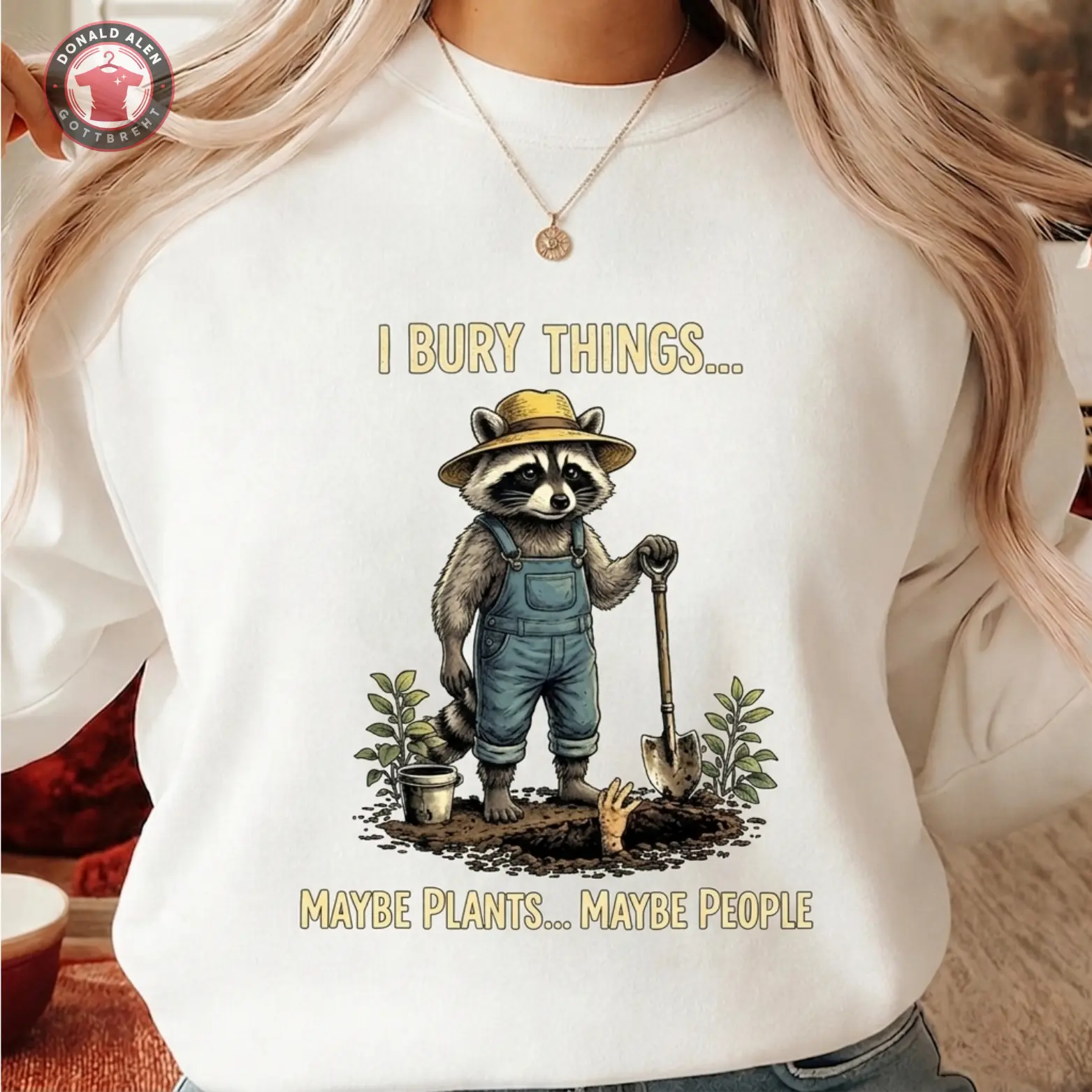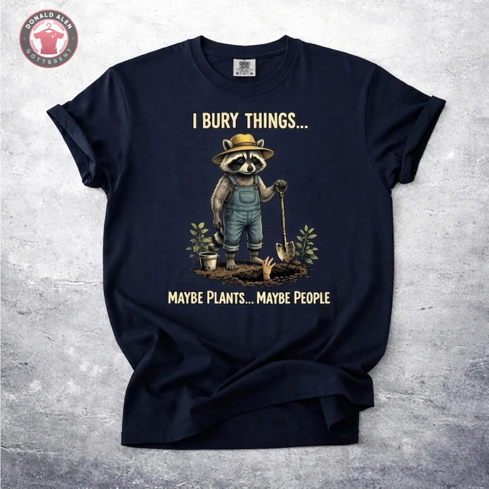 I Bury Things Maybe Plants Maybe People Shirt, Funny Raccoon Shirt, Dark Humor Aesthetic Tee, Streetwear Unisex, Gift for Women & Men