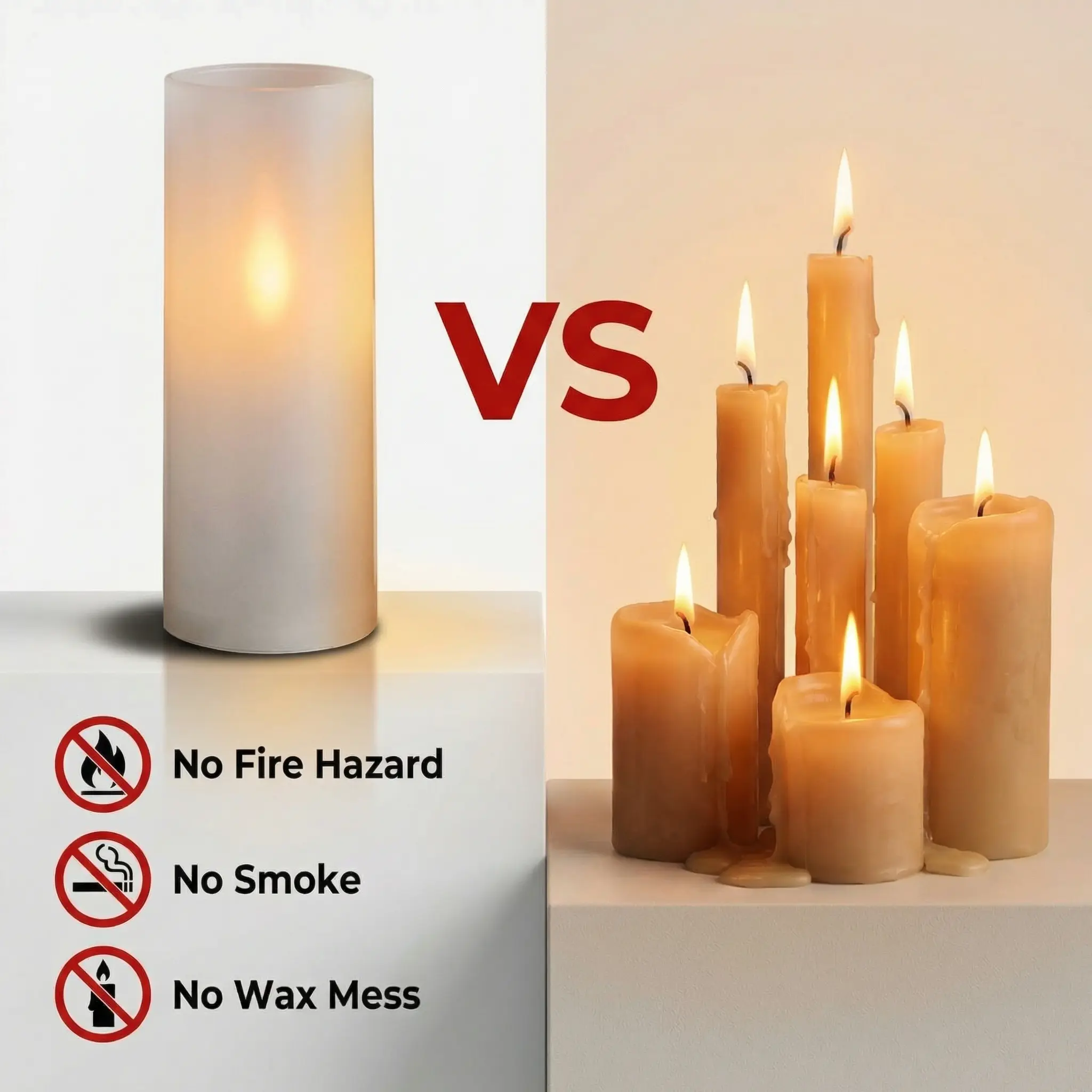 These flameless pillar candles feature no real open flame, giving you complete peace of mind when placing them anywhere around children or pets. The elegant acrylic housing is sturdier and lighter than glass, so you never have to worry about breakage or tipping over.