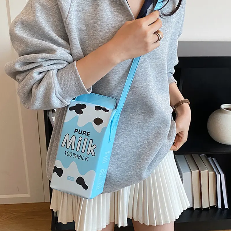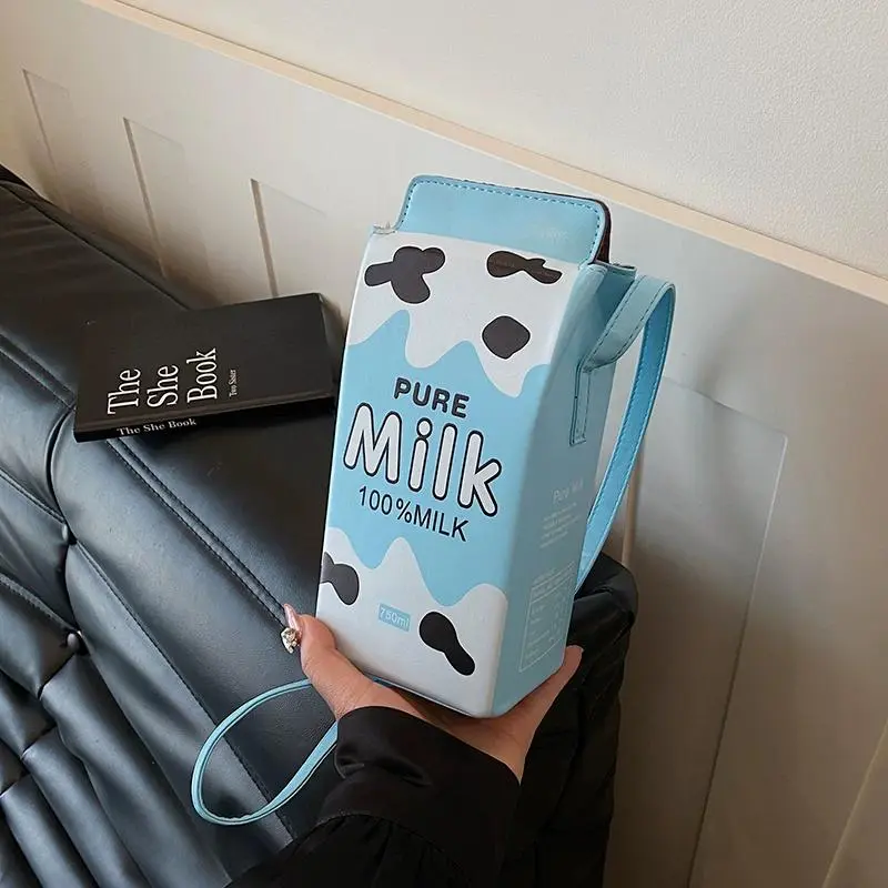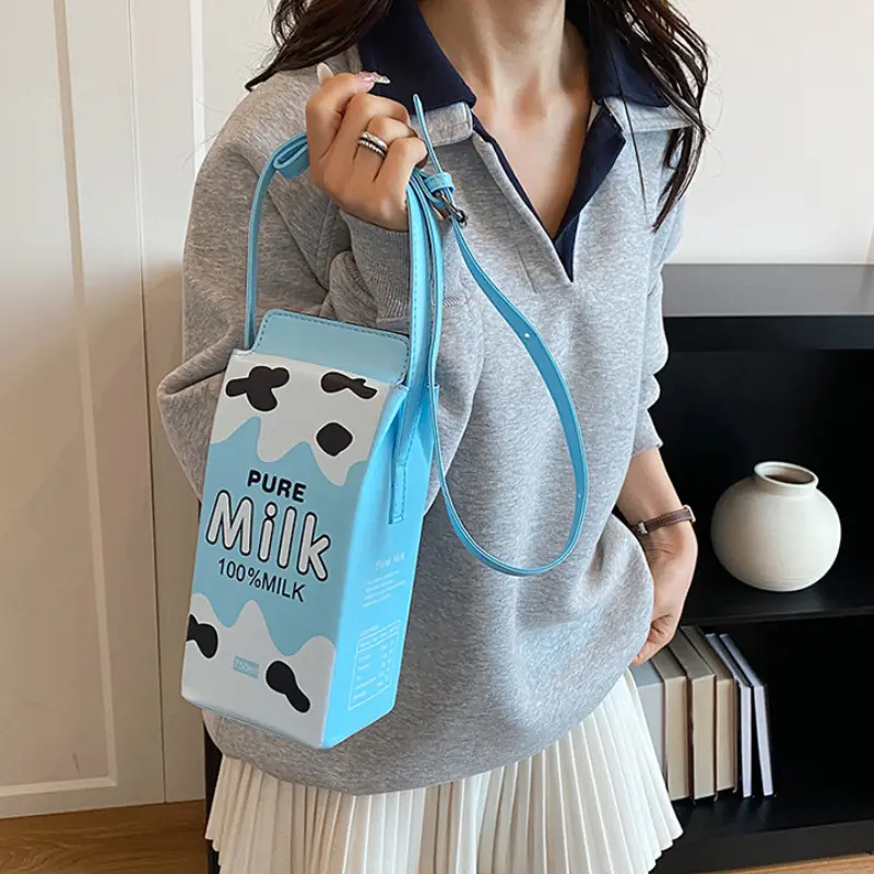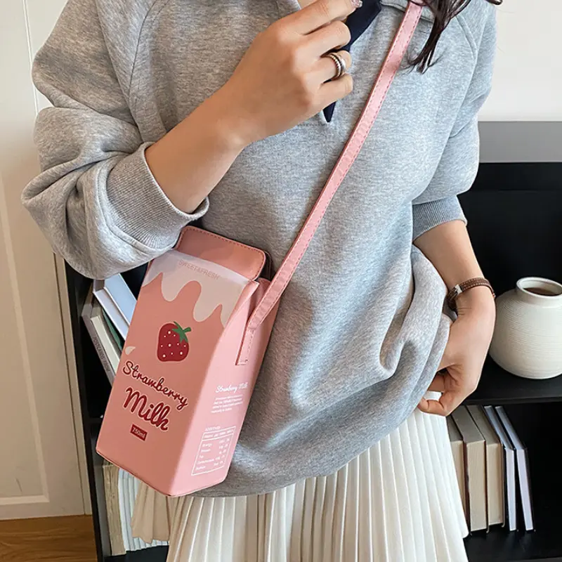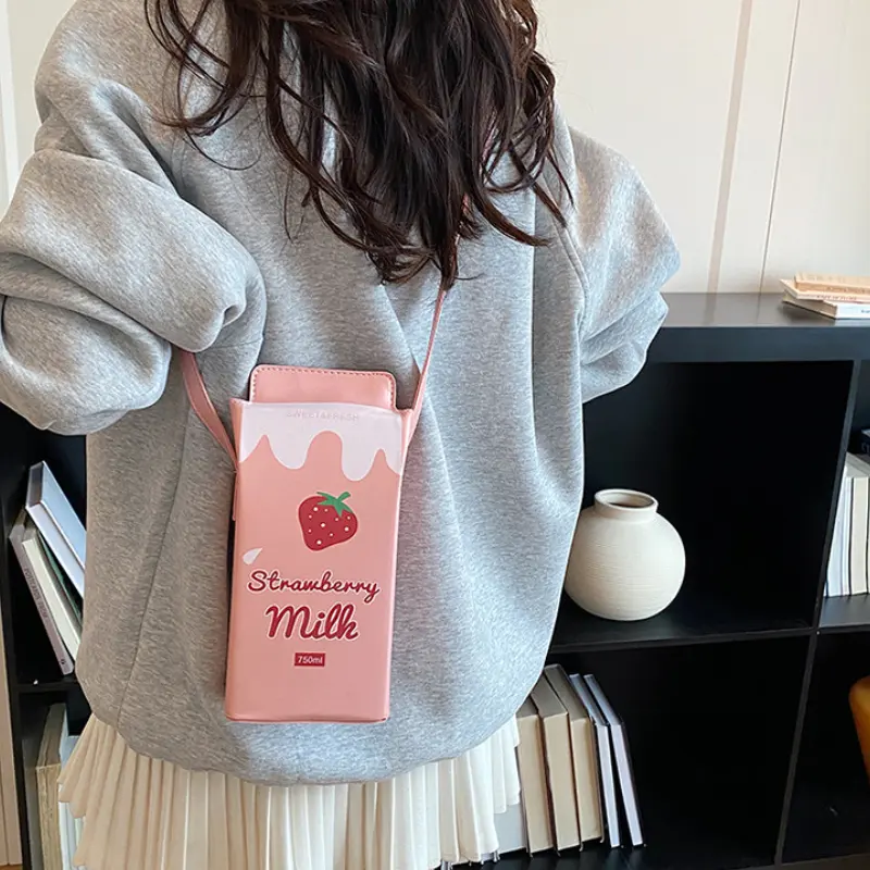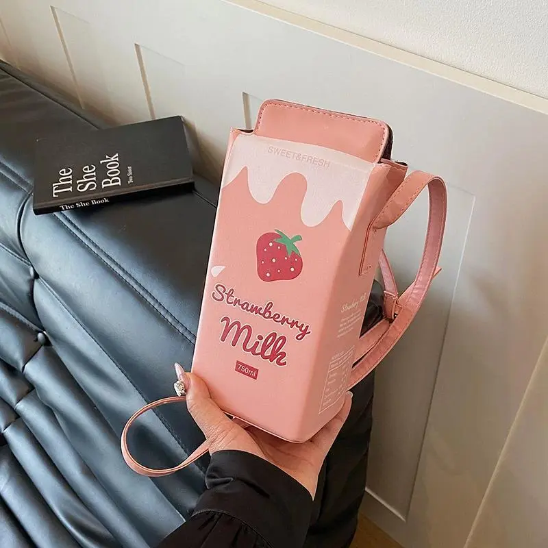 Unique Creative Milk Carton Bag with Strawberry Milk Design, Cute Beverage Box Crossbody and Handbag, Ideal for Daily Outings and Photo Styling as a Fun Mobile Phone Bag