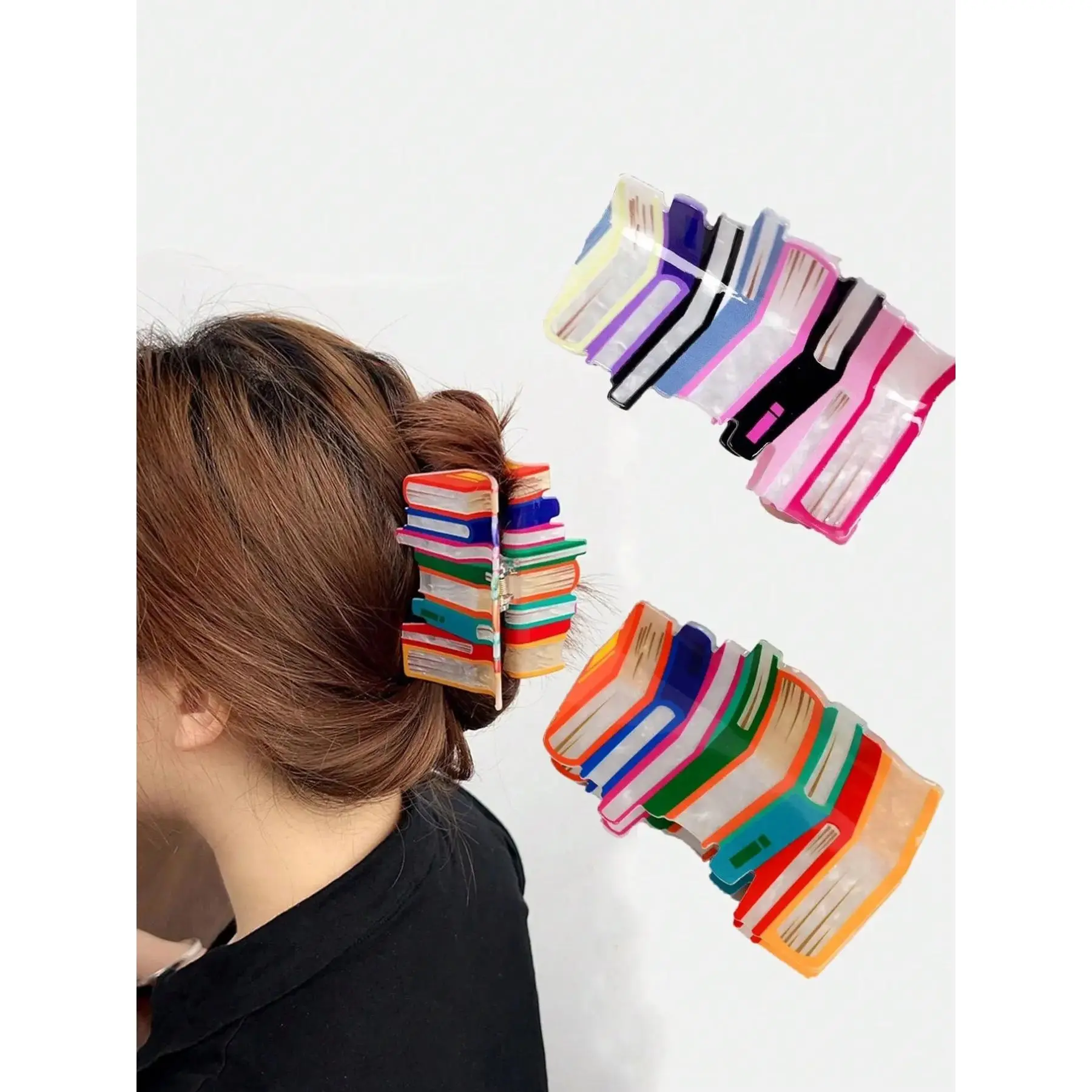 Colorblock Book Design Hair Claw, Creative Book Design Hair Accessories for Women & Girls, Cute Lovely Hairwear for Daily Used