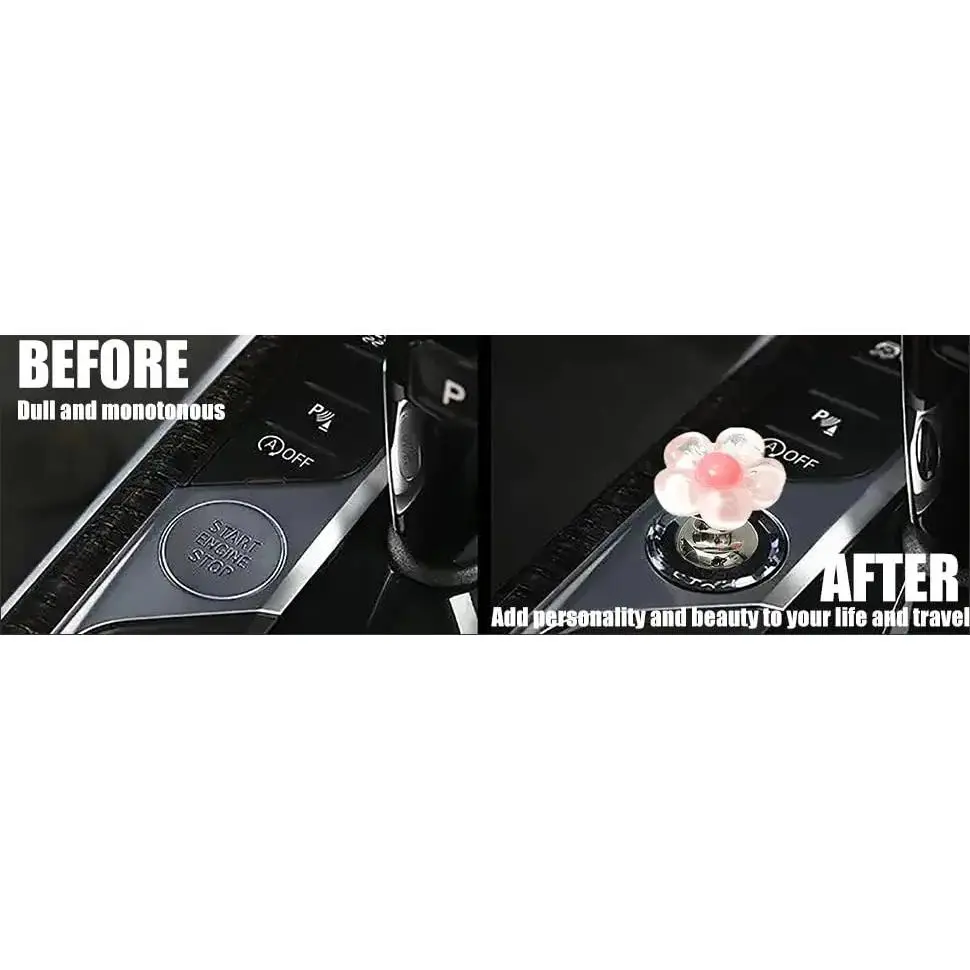 Car one-Touch Start Button,Engine Start/Stop Resin Flower Starter Cover,Pink Car Accessories