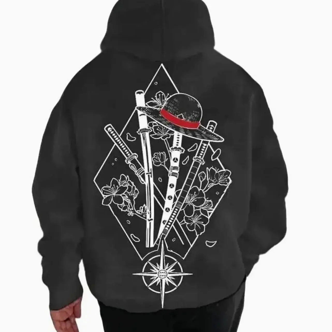 One Piece Manga Hoodie, Minimalist Manga-Inspired Sweatshirt, Iconic Straw Hat Design, Perfect for Anime Enthusiasts, Classic Cotton Menswear Top U 9