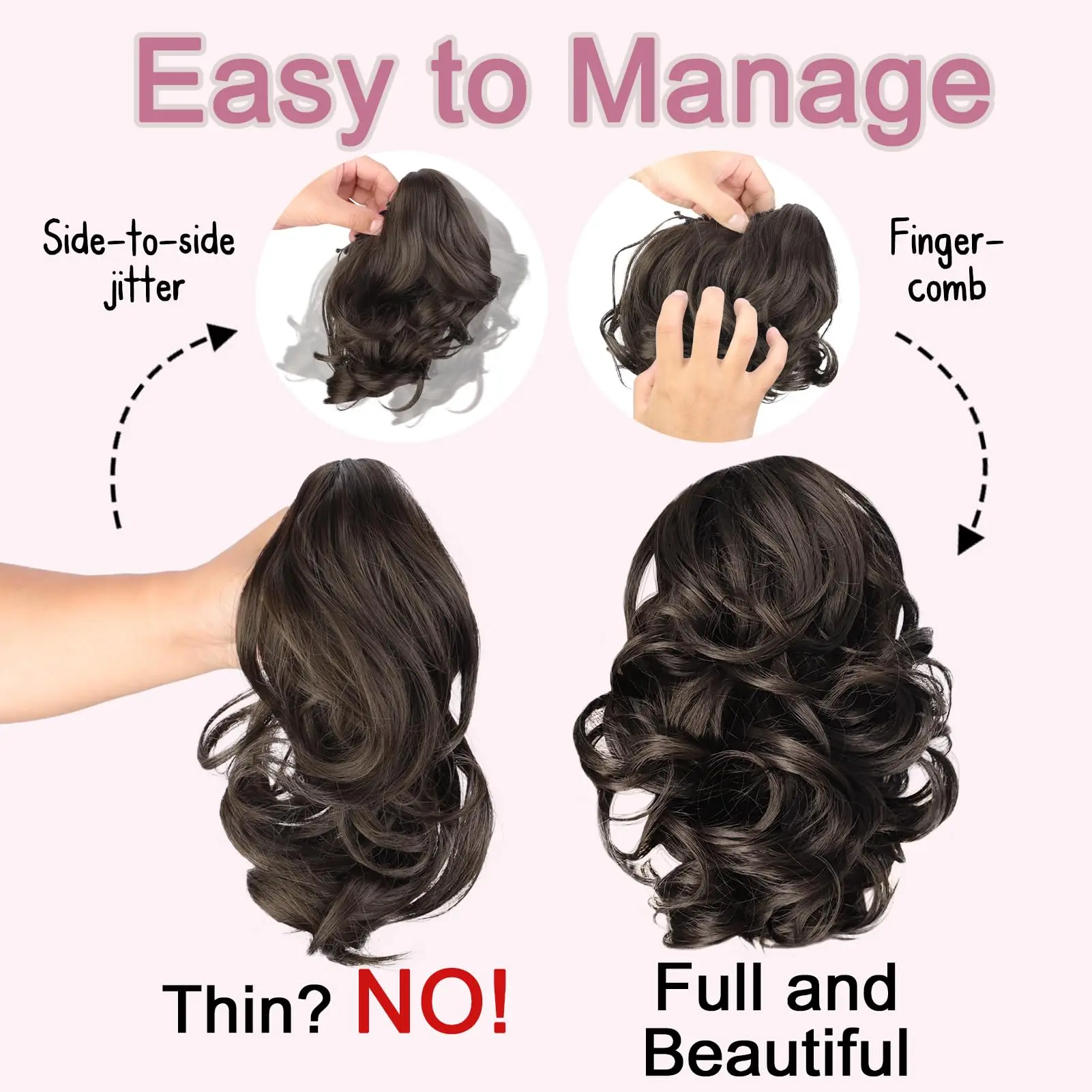 [Short,Thin/Fine Hair Friendly] Super lightweight (80grams) with a small claw clip to ensure a more comfortable and secure fit, perfect for short, thin or fine hair. Note: NOT recommend for long/thick hair because the claw clip can’t catch much hair