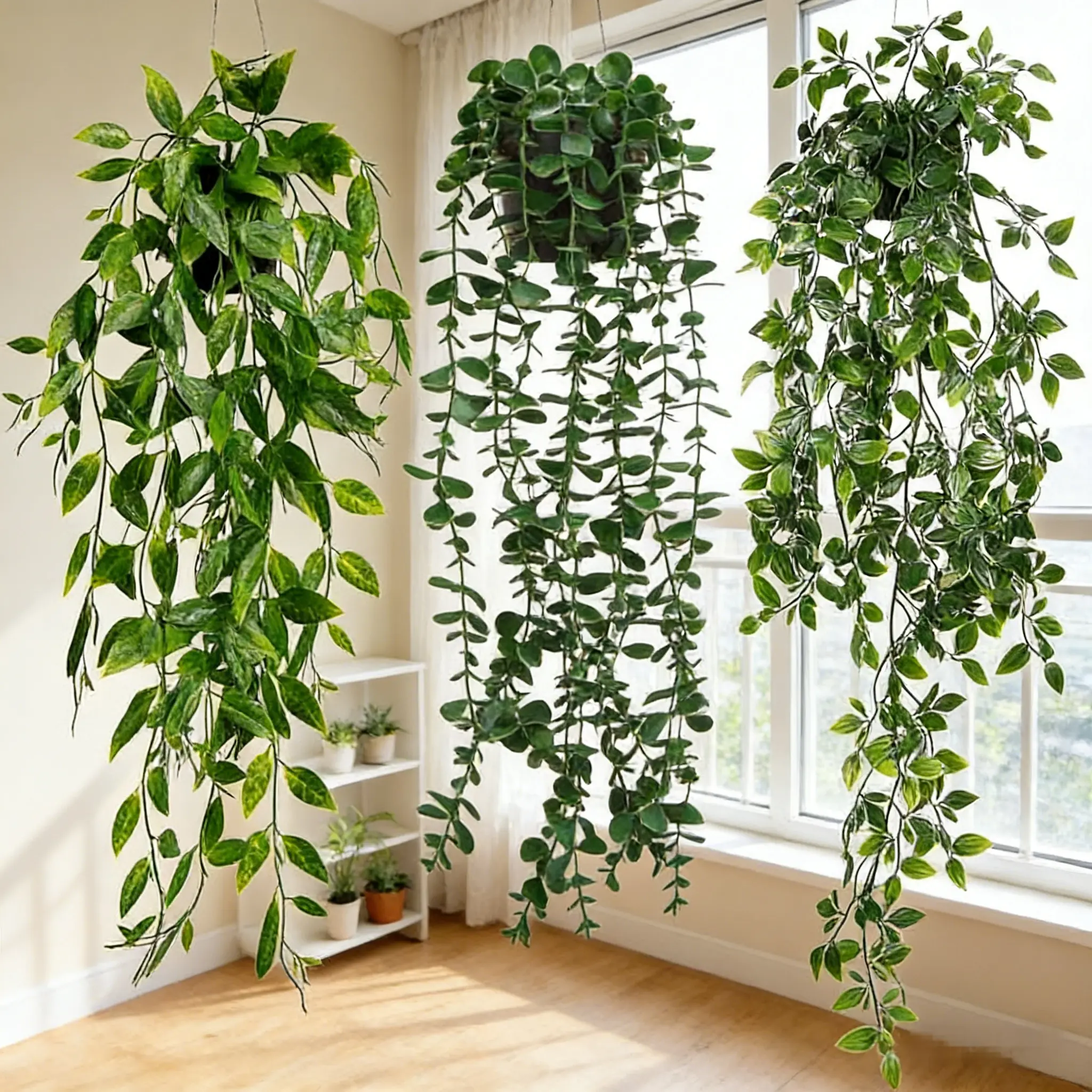 Each plant features 3 unique, natural-looking leaf designs with detailed veins and realistic green tones, fooling even the pickiest plant lovers. They look indistinguishable from real trailing plants!