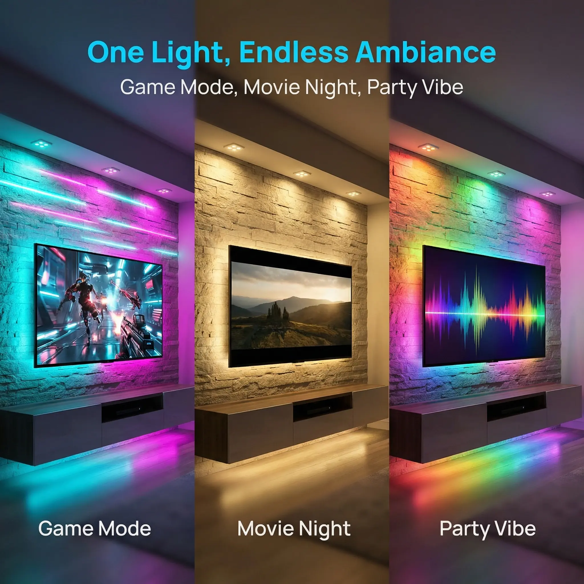 Easily manage your lights with both APP and remote control. Switch colors, adjust effects, and create personalized setups for different moods and occasions. The music sync feature enhances parties and celebrations, while DIY scene modes allow customization for Christmas, holidays, and everyday home decor.