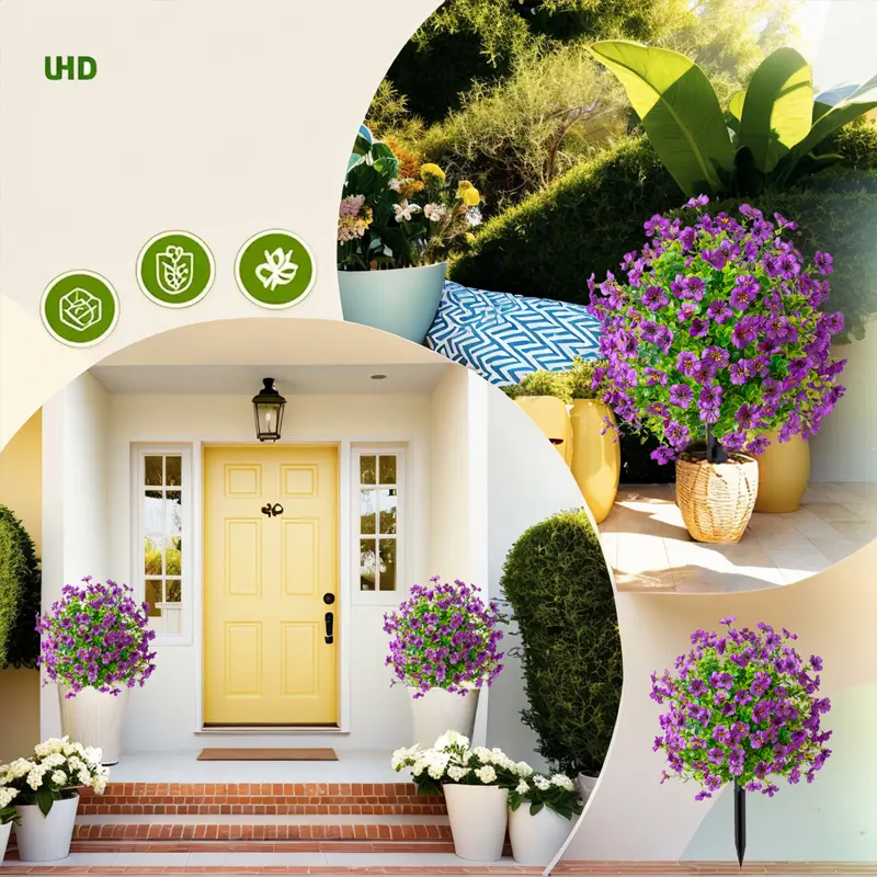🏡 Ideal for enhancing any space, these faux flowers are a must-have for home decoration. They provide a natural look with minimal effort. Whether you're decorating your porch, patio, or garden, these vibrant flowers will bring life to your surroundings. Enjoy the beauty of nature without the responsibility of real plants.