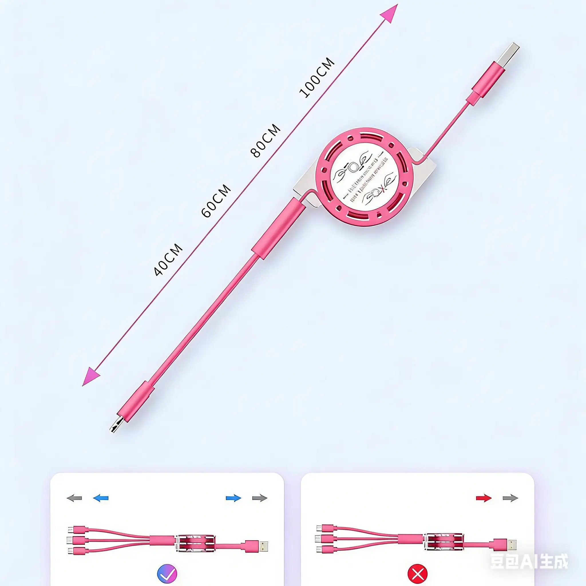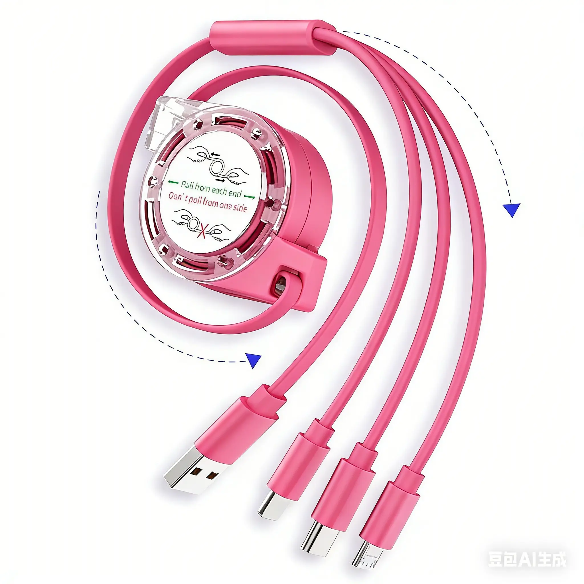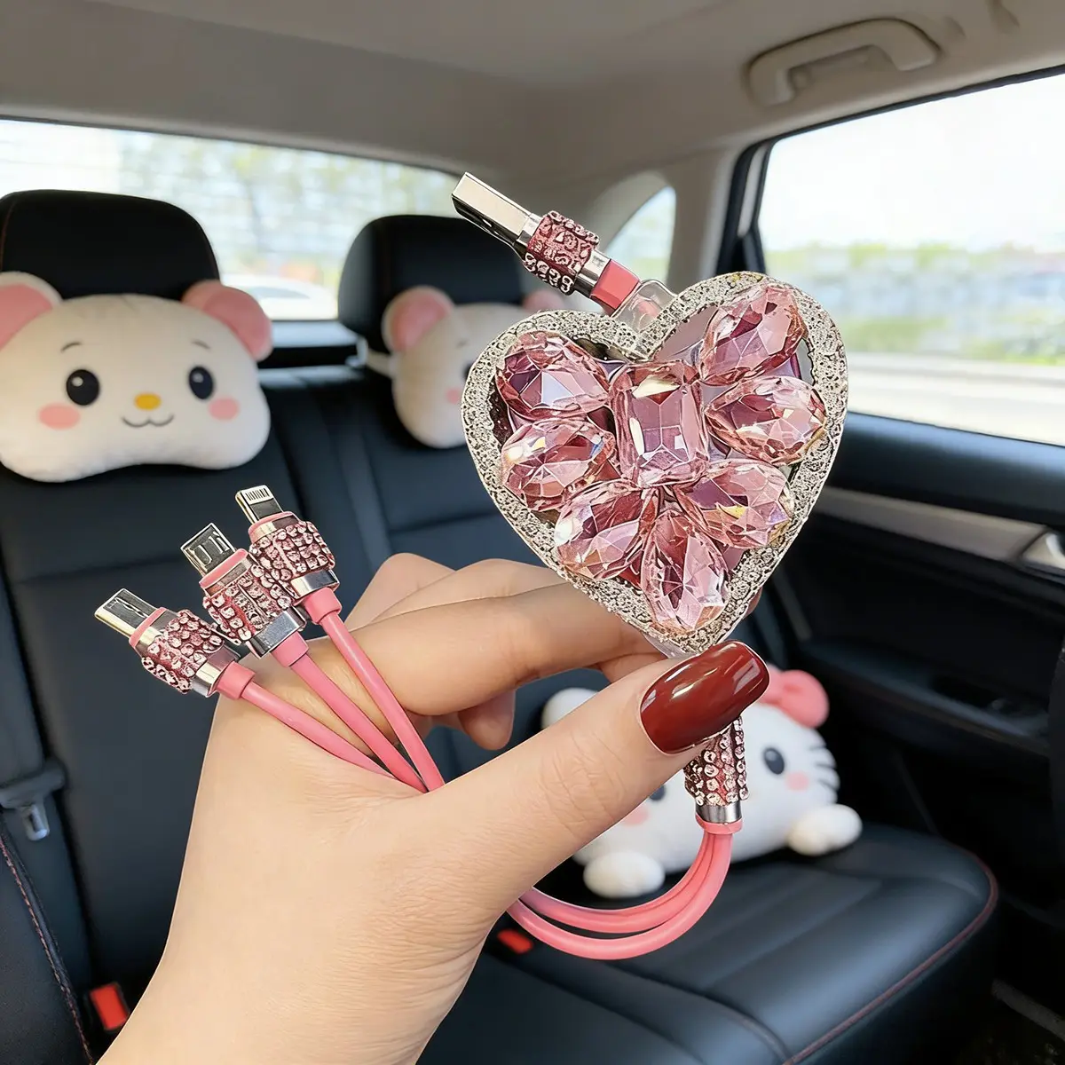 Girly Tech Aesthetic Must-Have| Pink Bling 3-in-1 Charging Cable| Elevate Your Desk Setup & Match Your Pink Accessories
