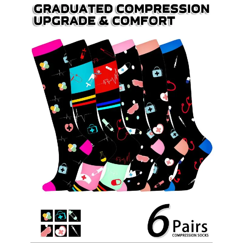 Unisex's Colorful Compression Socks, Sports Socks for Running, Nurses, Pregnant Women, Sports Socks for Improving Blood Circulation, Polyester Athletic Socks