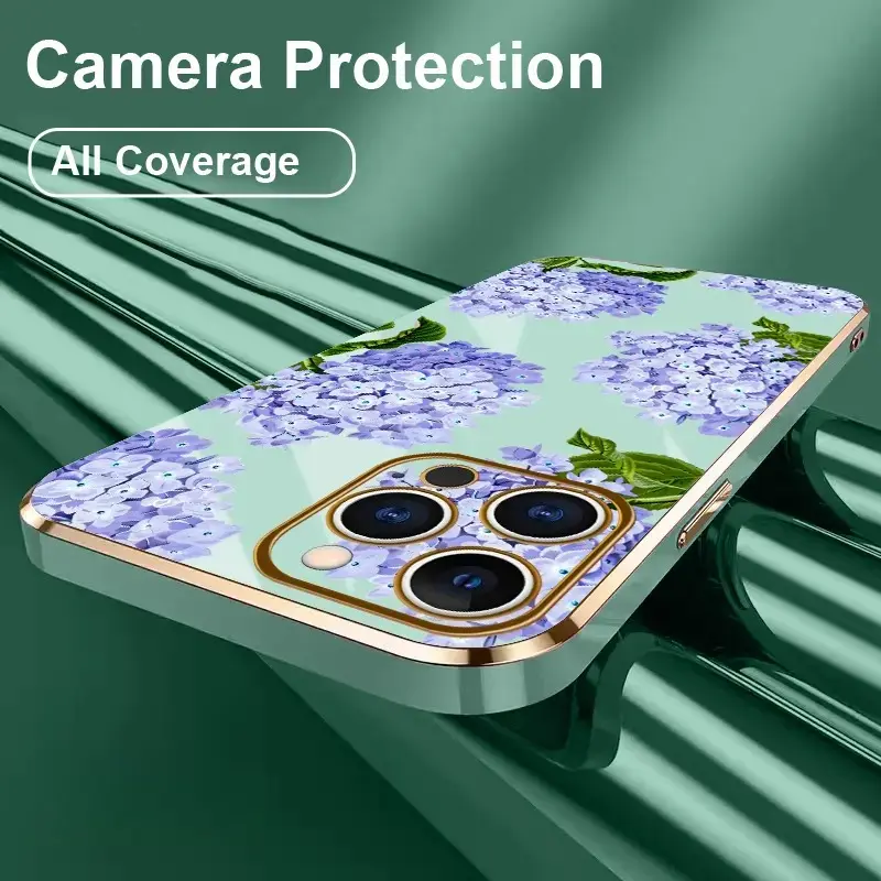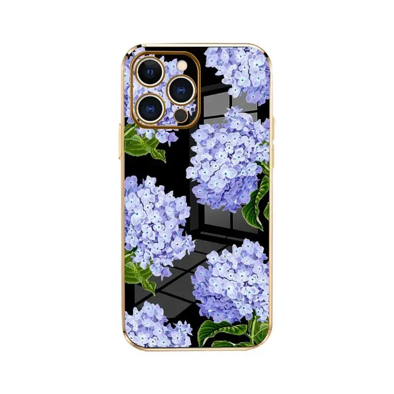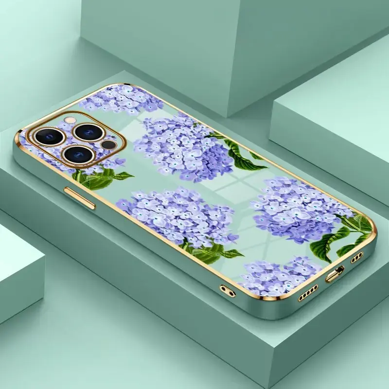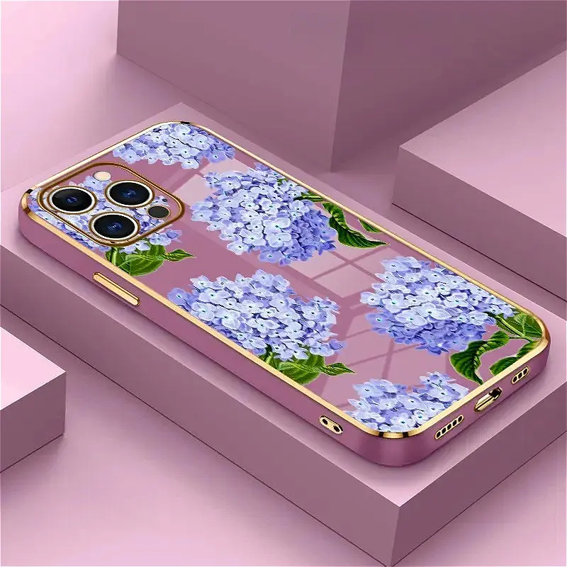 5. Electroplated TPU Phone Case Lavender Hydrangea Grace Pattern Classic Straight Design Scratch Resistant Softcase for iPhone 17 15 Pro Max 16 14 Plus 13 12 11