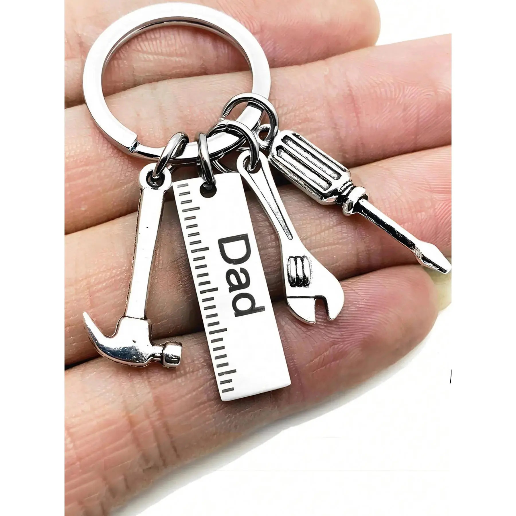 Men's Fashion Creative Letter Pattern Craftsmanship Keychain, Trendy Durable Stainless Steel Keychain Pendant, Hammer Wrench Screwdriver Shape Design Keychain, Gift