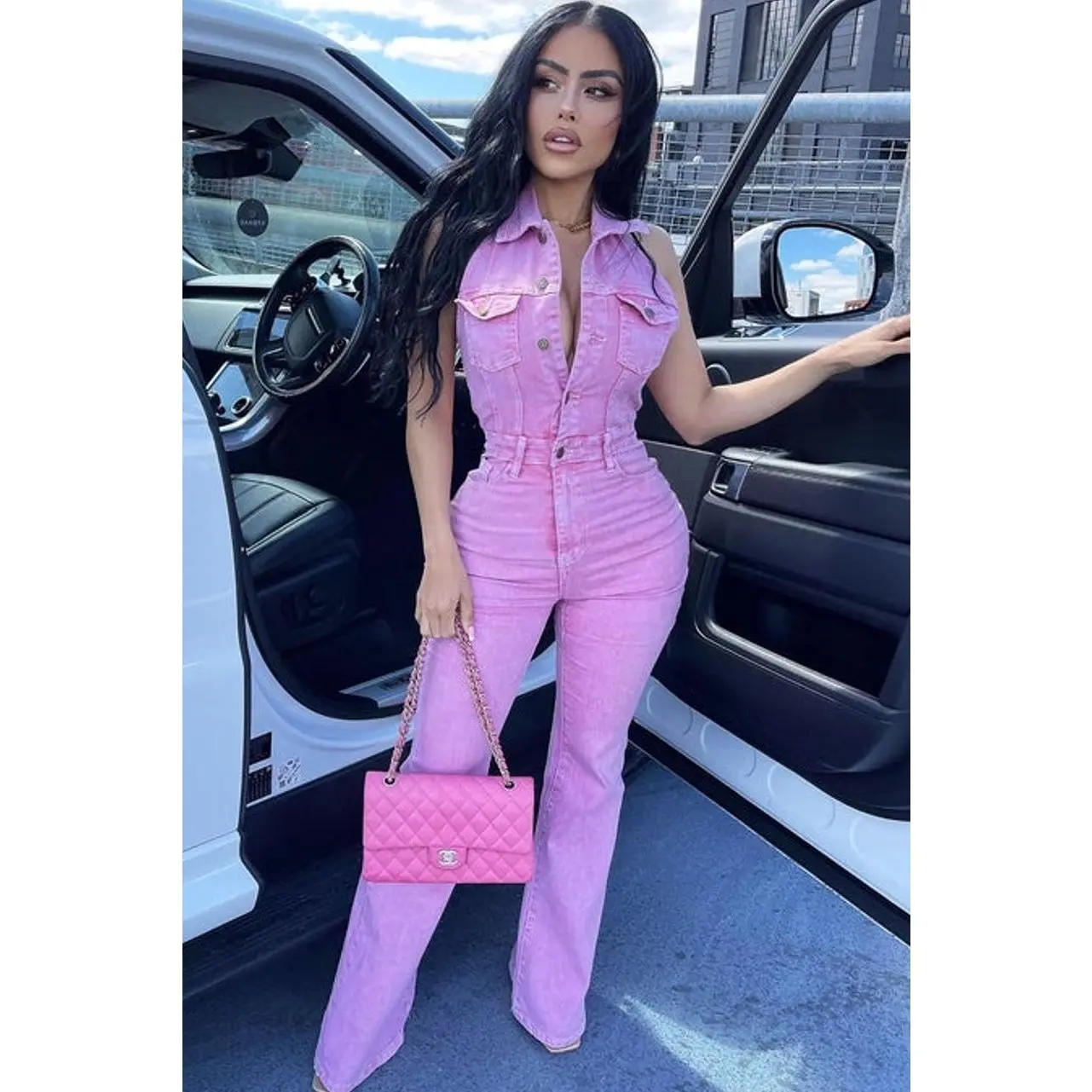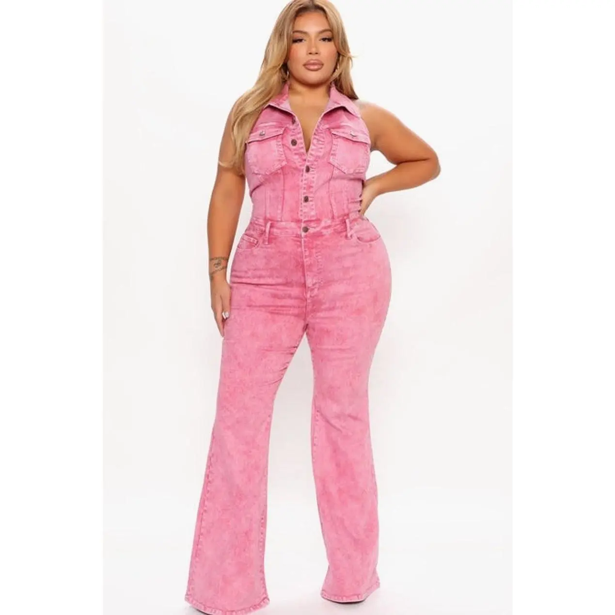 Let's Go Party Denim Jumpsuit - Pink 4