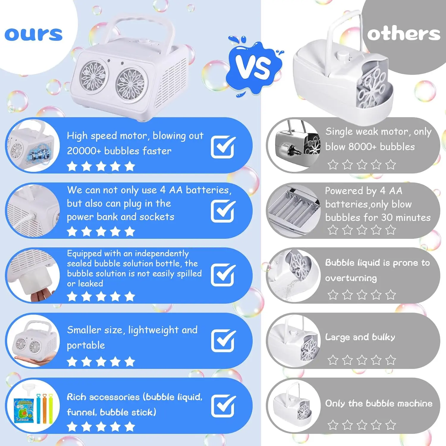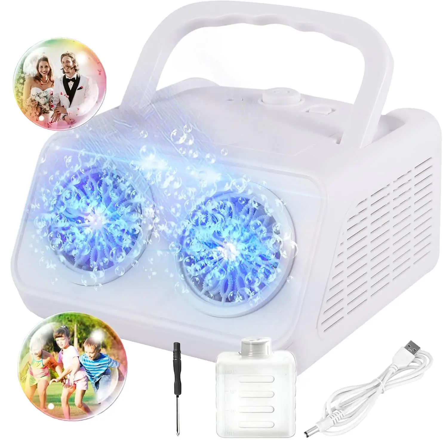 Dual Motor Bubble Machine, 20000+ Bubbles Per Minute, USB-C & Battery Powered, Leak-Proof Portable Bubble Maker for Party Wedding Pool Outdoor